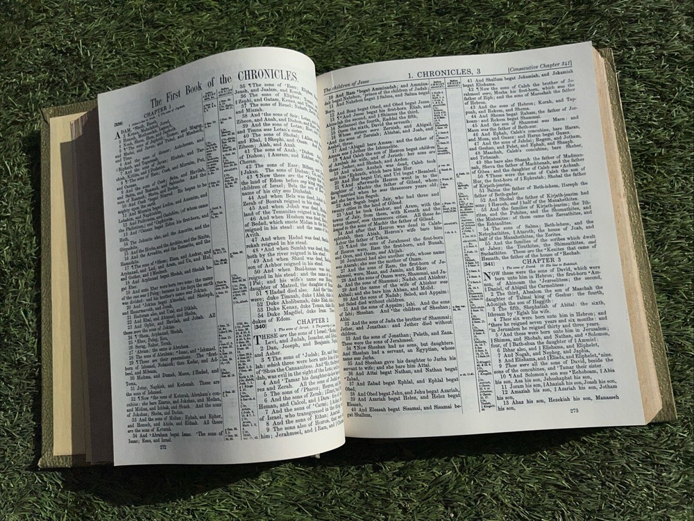 Holy Bible Heirloom Master Reference Edition King James Version Red Letter 1964. Used some stains and shown.