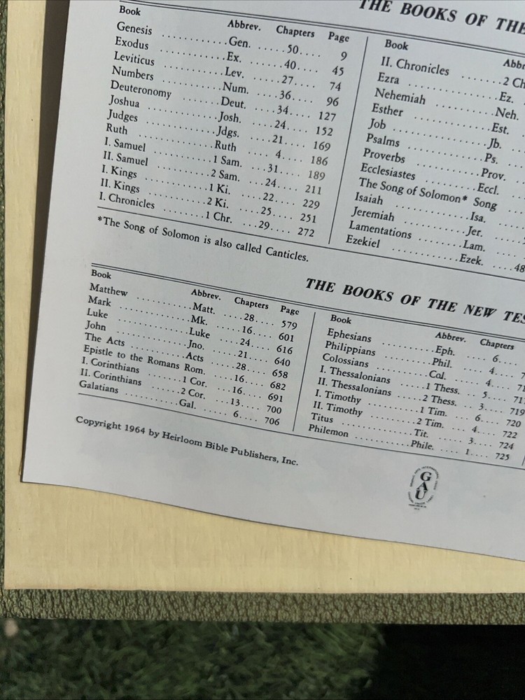 Holy Bible Heirloom Master Reference Edition King James Version Red Letter 1964. Used some stains and shown....