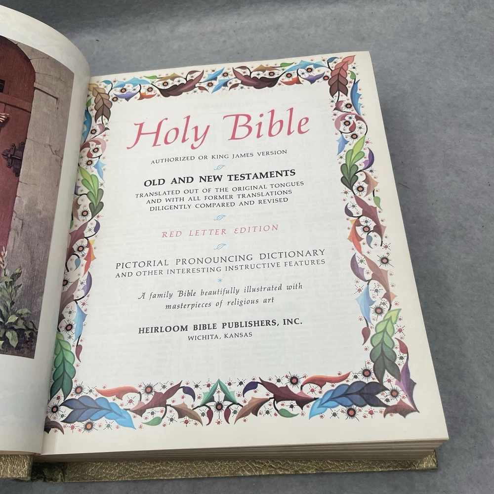 The Holy Bible Heirloom Master Reference Edition King James Version Red Letter 1964 is a vintage English Bible published by Heirloom Bible Publishers in the United States. This hardcover edition features faux leather binding, maps, gilt edges, and red letter text. With a total of 900+ pages, it is a comprehensive family Bible intended for young adults, ages 9-12, and adults. The Bible is illustrated and includes features that make it a valuable resource for those interested in religion and spirituality. This classic edition is a timeless piece that would make a meaningful addition to any personal or family collection.