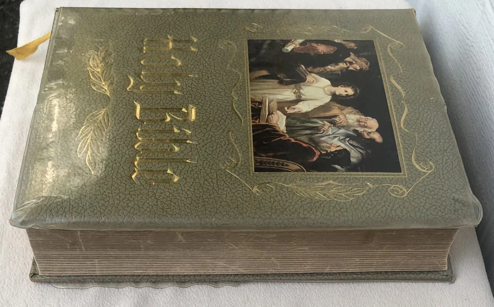 Exact item pictured. Bible has a plastic protector over it. See pics for details...