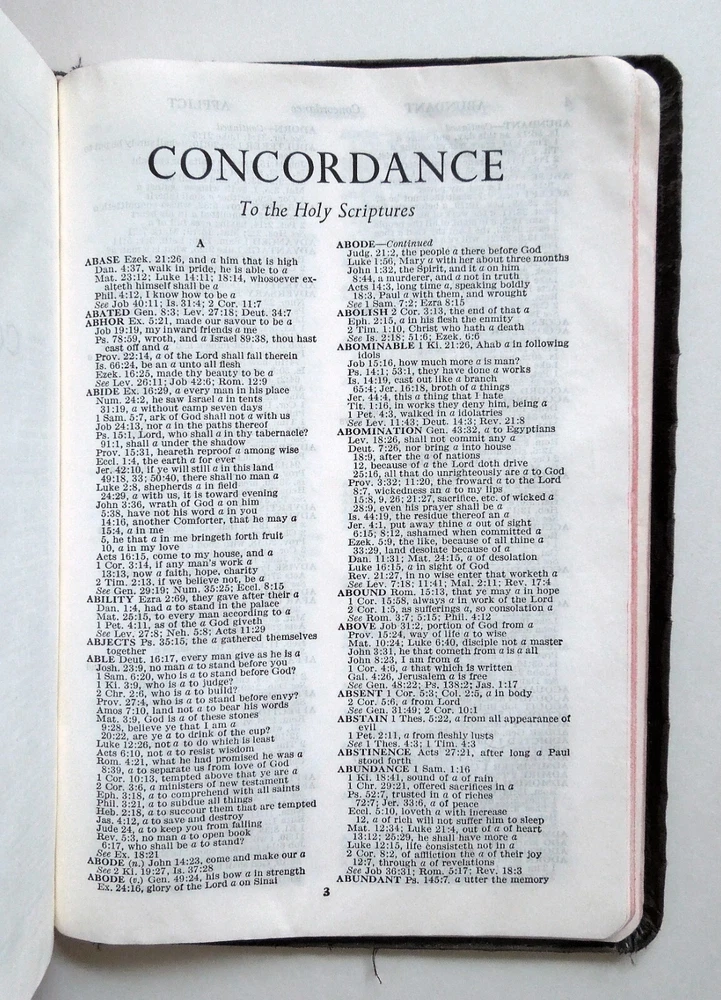 HOLY BIBLE 1960s. 1,524pgs. Softcover edition (leather bound). Published by The World Bible Publishing Company. Good; some cover/spine wear. Some markings. Approx: 6 1/2" x 9 1/2" x 1 1/2", 2lb 7oz. Complete and unabridged. King James Version (KJV). Red letter edition (Words of Christ in red ink). Center reference column. Concordance. Maps. Illustrations. Study Helps: Summary of the Books of the Bible; From Malachi to Matthew; Jewish Sects and Their Beliefs; Proving the Old Testament; Great Periods of Bible History; Items of Information Concerning the Bible; Parables and Miracles of the Bible; The Languages of the Bible. I do not use stock photos. Please read entire listing and look at photos provided before purchasing. All items sold "as is." All sales final. SHIPPING METHOD: Media Mail. Shipping total is calculated by Ebay. I will ship your item as fast as I can after purchase. INFORMATION: I ship only to addresses in the United States. Please make sure that your mailing address is correct before you buy. I cannot ship on weekends (Saturdays and Sundays) or federal holidays. Handling time is (5) business days, though often less. ( Please note that Ebay considers the first day following purchase to be day one of the potential five, and does not include either weekends or federal holidays ). I try my best to describe each item, though please bear in mind that I am not a professional appraiser. Thank you very much for looking at my item! I invite you to look at all of the many other items that I am currently selling on Ebay. Have a great day! :)