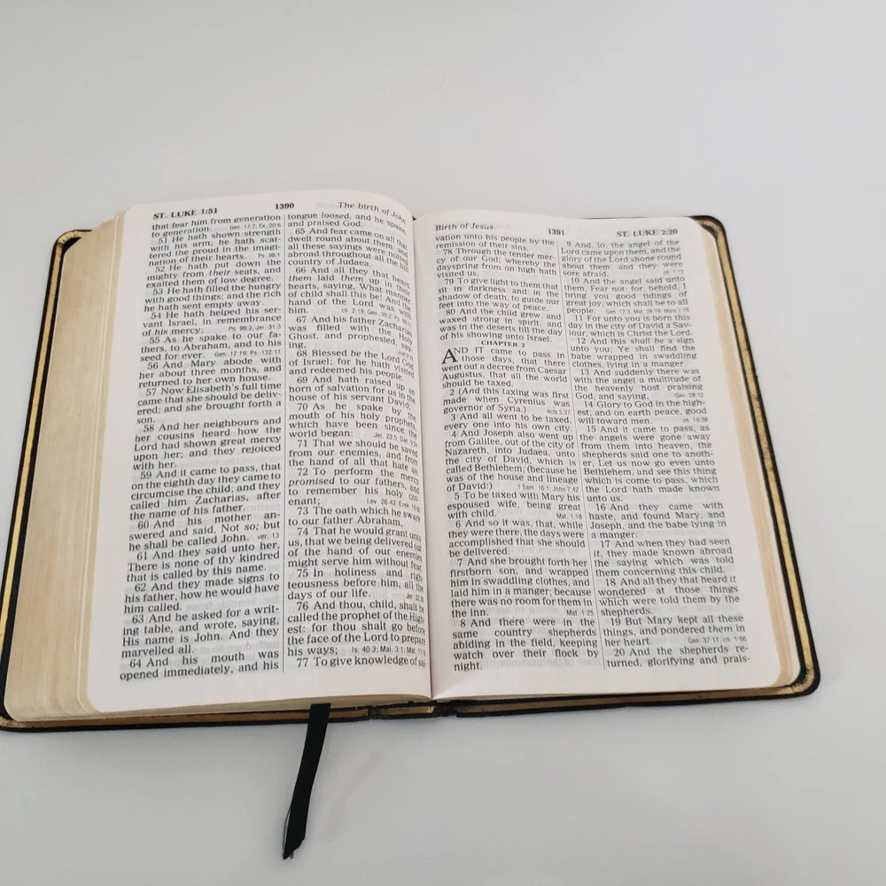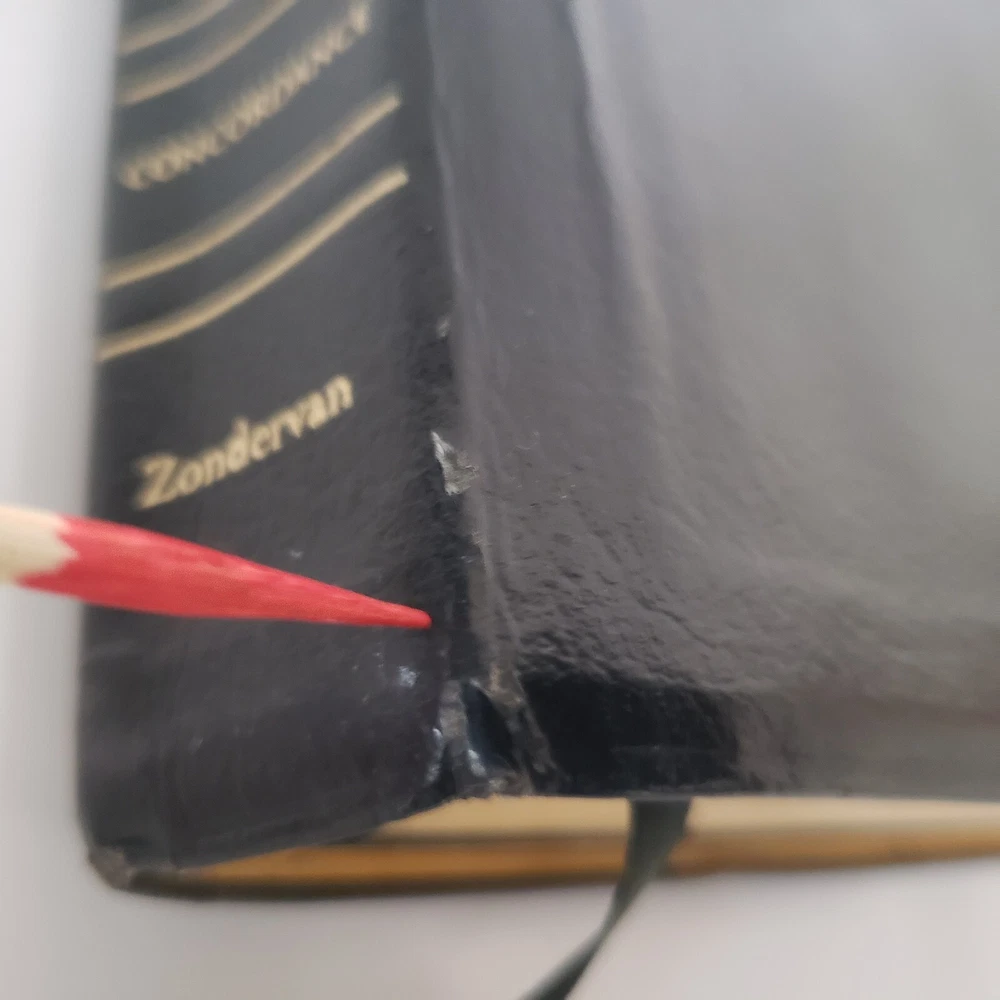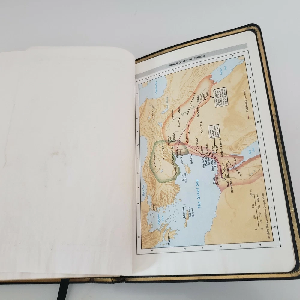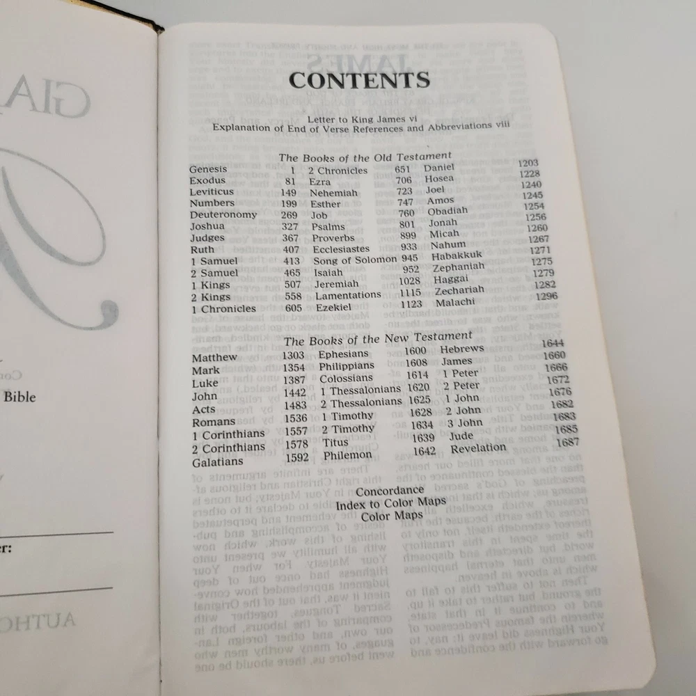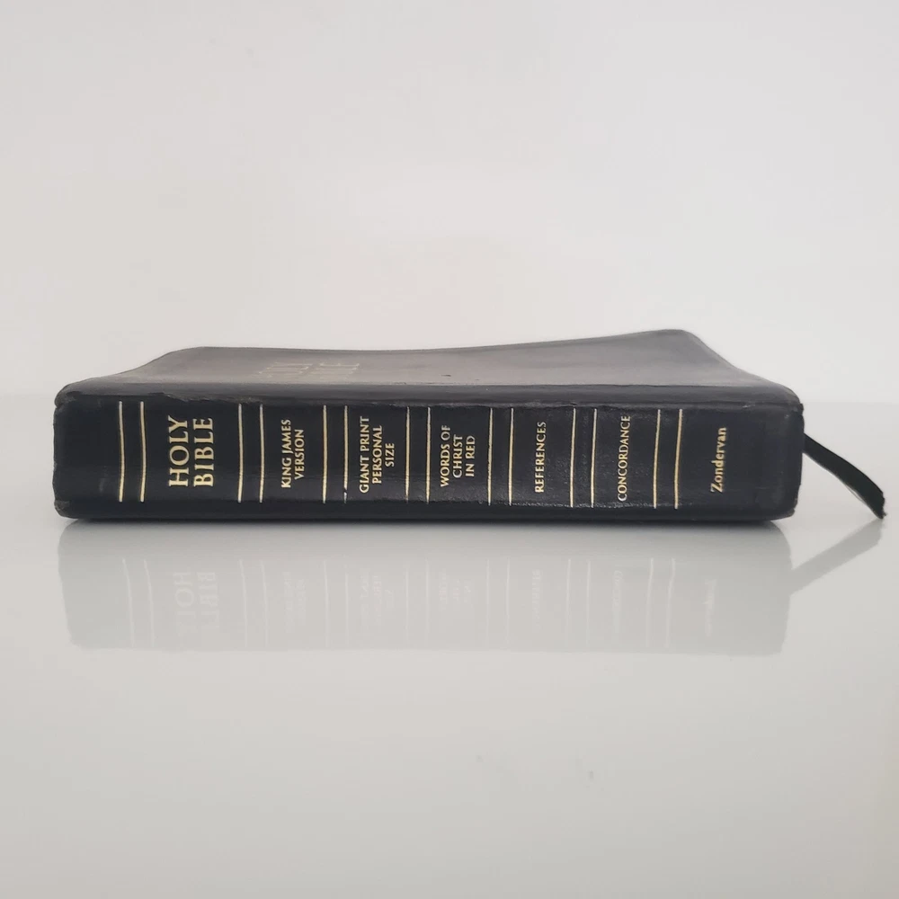 Holy Bible KJV 1994 Large Print Black Bonded Leather Red Letter Entry Color Maps BC191 #245 Overall good condition. One death entry, a short list on back page and a few pages in New Test. has verse underlining. Very minimal. Leather has a few tiny nicks at binding edge but LOTS of use still left. See all pics for detail Thanks for looking!