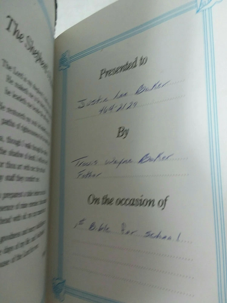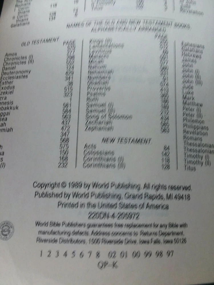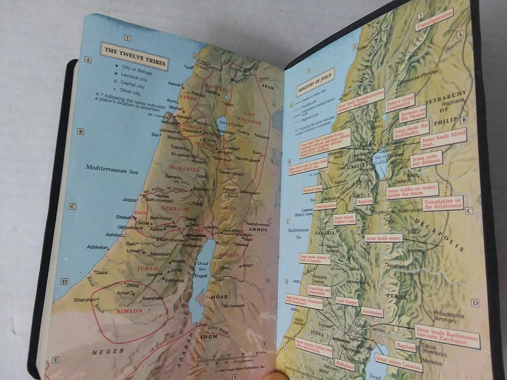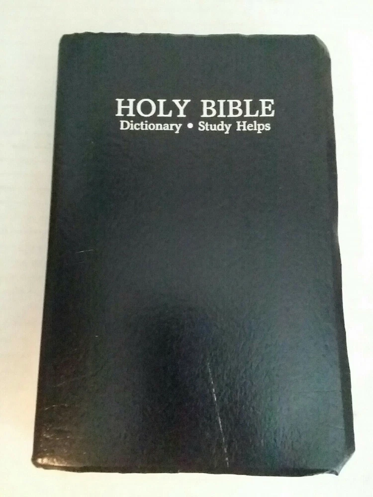 Holy Bible Dictionary Study Helps KJV Red Letter World Publishing 1989 Blue good condition, writing on presentation page, tight binding, page staining on 4 pages, see pictures for details more books and bibles in our store Buy with confidence, shipped with care Shipped USPS