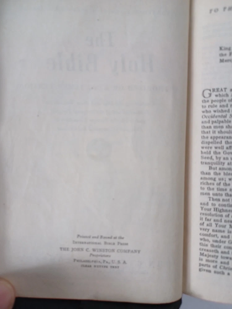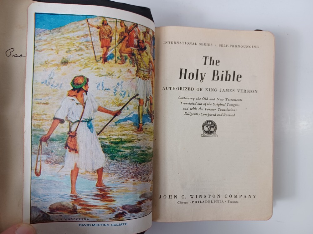 Holy Bible KJV - John C. Winston / International Series Self Pronouncing 1940's good condition, writing on presentation page, tight binding, age and storage related wear to cover, see pictures for details many other vintage books and bibles in our store Buy with confidence, shipped with care Shipped USPS