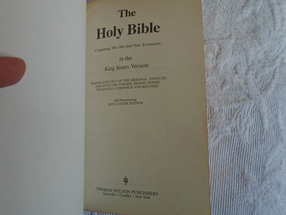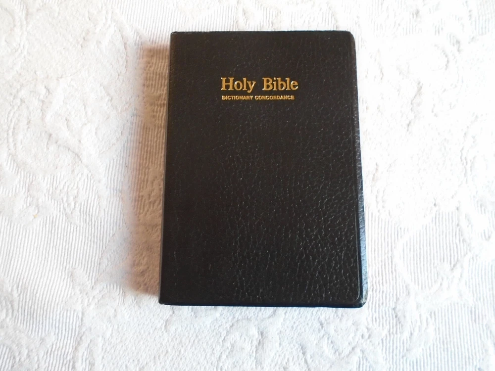 Holy Bible King James Version (KJV) Red Letter Dictionary Concordance Maps Published by T. Nelson 1984 Black Faux Leather SIze is 8" Tall, 5.5" long and 1.5" thick