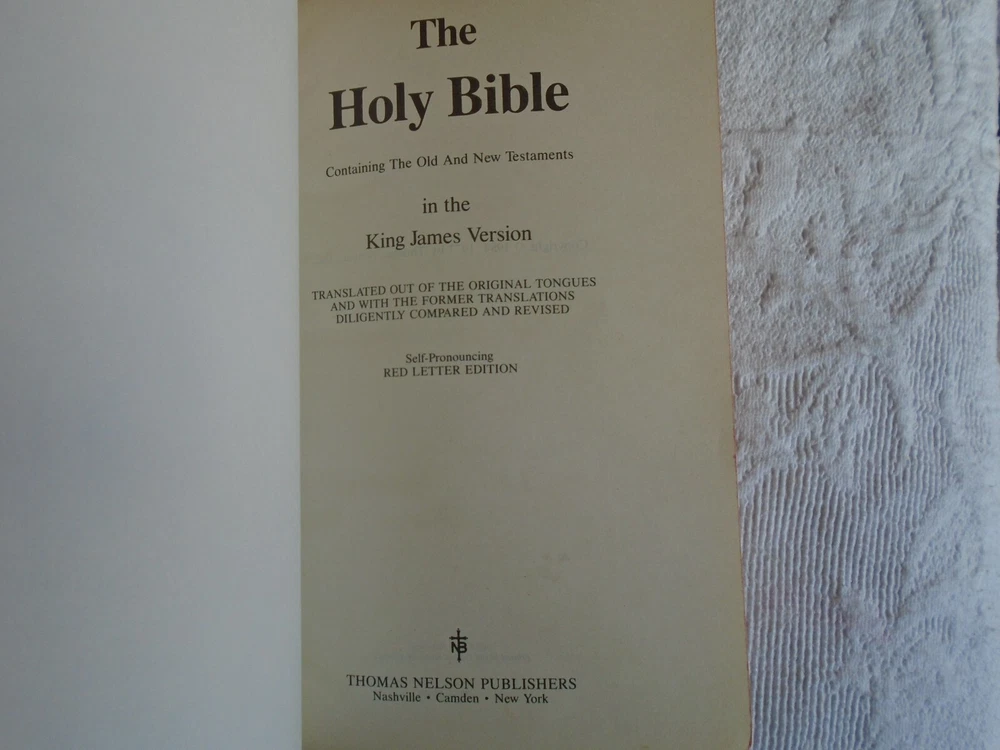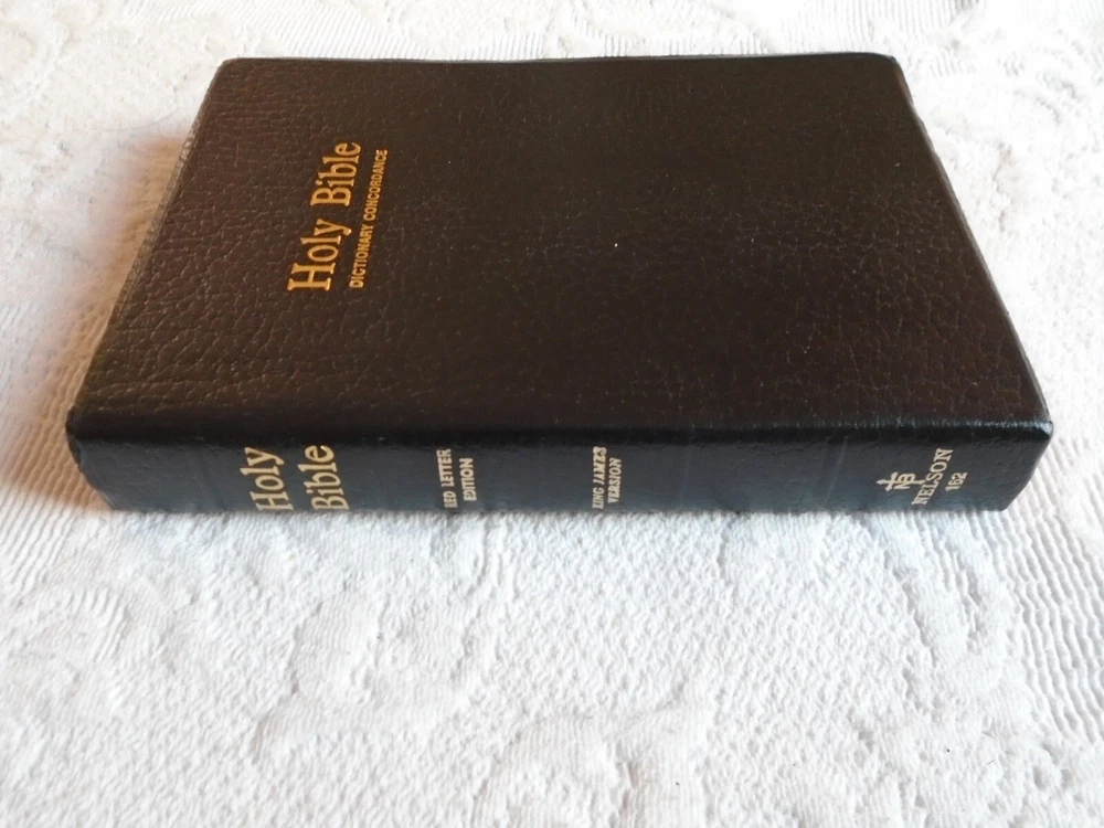 Holy Bible King James Version (KJV) Red Letter Dictionary Concordance Maps Published by T. Nelson 1984 Black Faux Leather SIze is 8" Tall, 5.5" long and 1.5" thick...