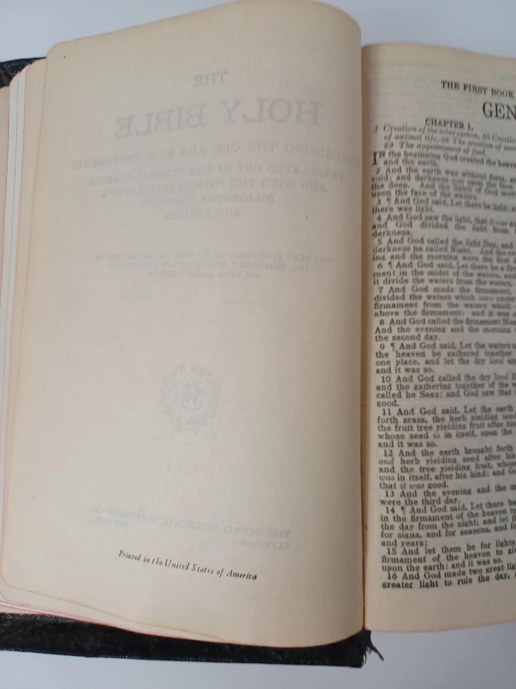 Holy Bible KJV Red Letter Edition Concordance World Publishing Vintage good condition, tight binding, clean and flat, writing on inside front cover, see pictures for details more books and bibles in our store Buy with confidence, shipped with care Shipped USPS