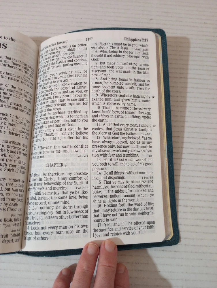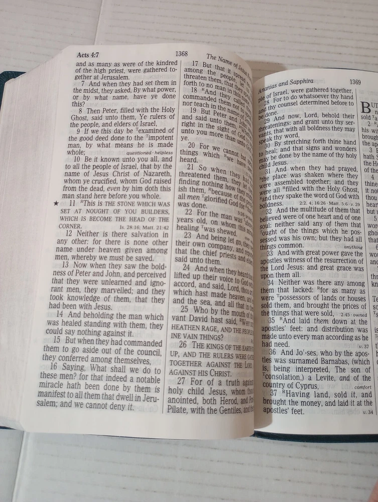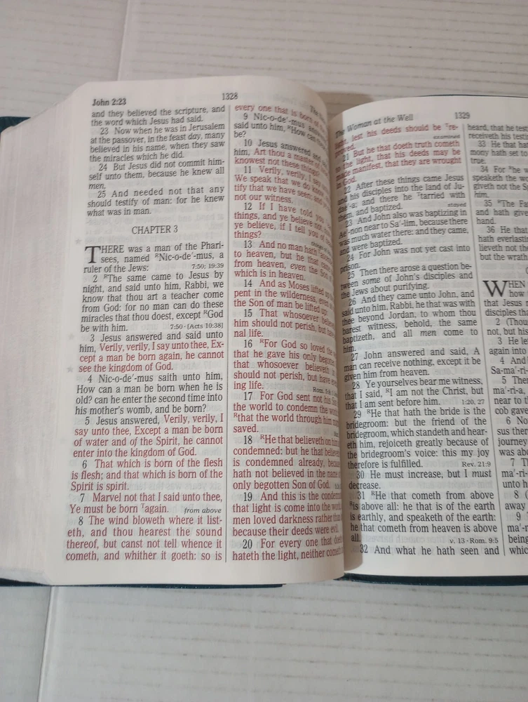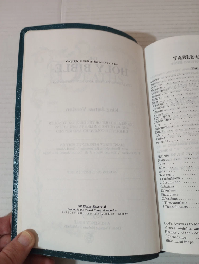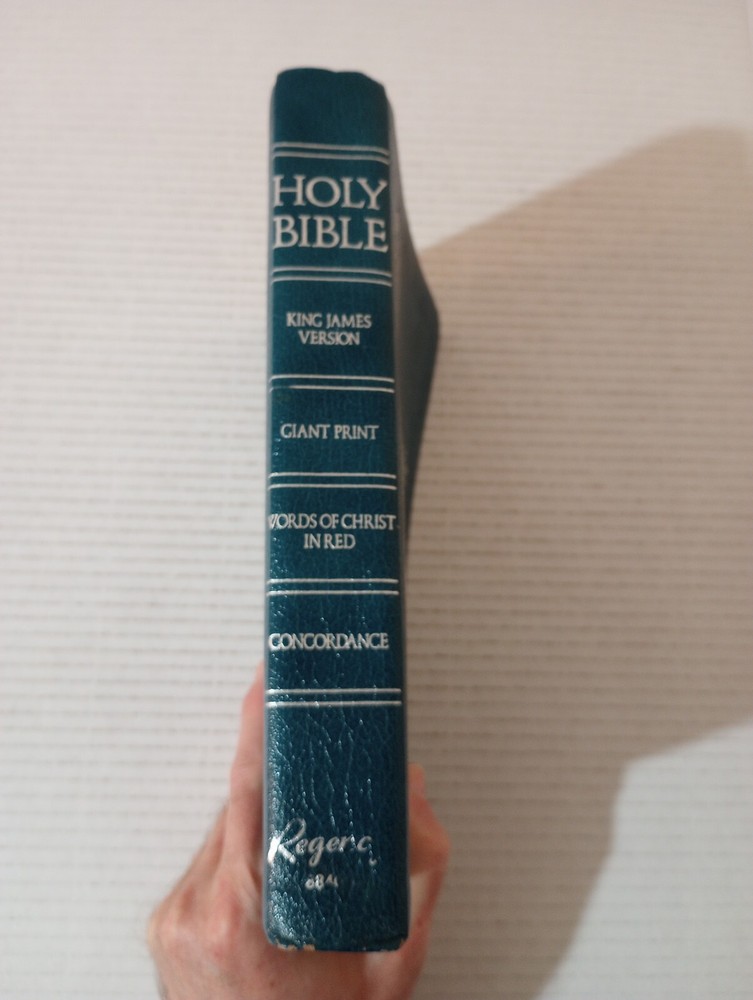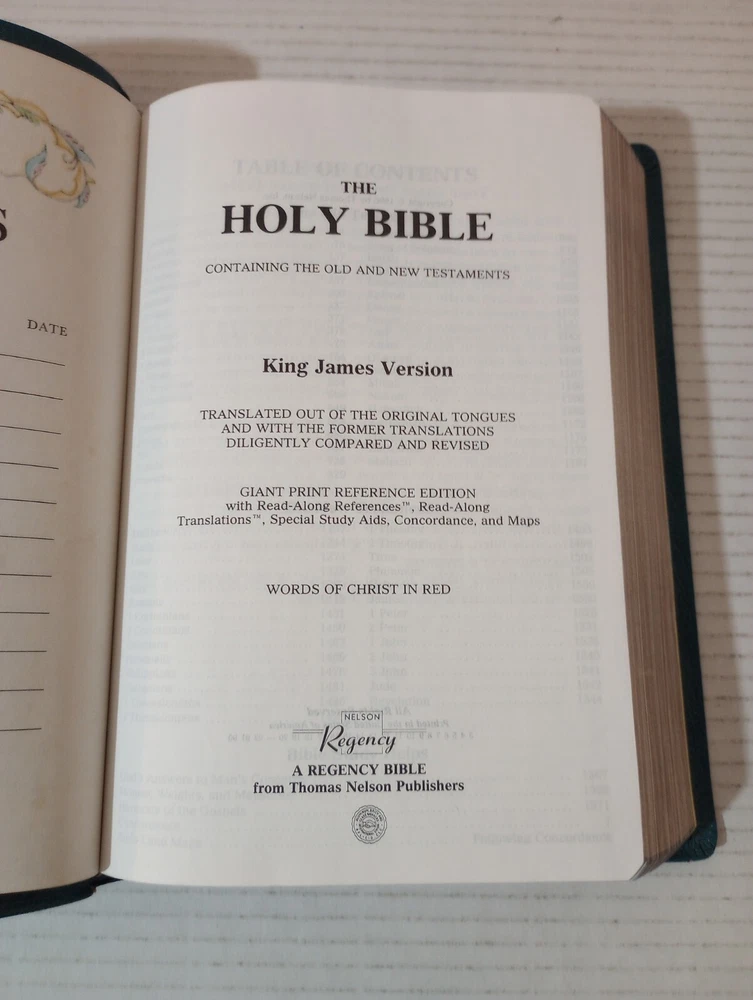Holy Bible KJV Red Letter Giant Print Concordance Regency. -Cover shows moderate wear. -Binding in excellent condition. -Some writing inside front cover. -No other markings on pages. -No missing pages. -Please review all photos for details of condition and content. -Shipped with USPS Media Mail or Priority Mail. -Also available for local pickup. We welcome offers counter offers and negotiation. We do not work Sundays. Thank you for your time!