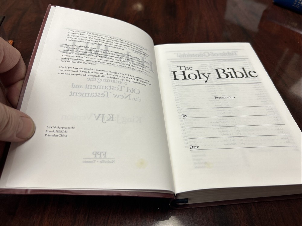 Cover a little wrinkled - text and dedication clean. Please check the pictures carefully and ask all questions before bidding. I have other Bibles in my other auctions and would be glad to make a deal and combine shipping. Thanks for looking, and the Lord ‘s blessings!