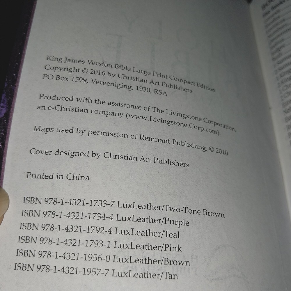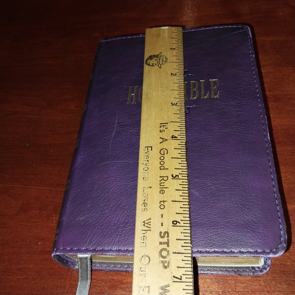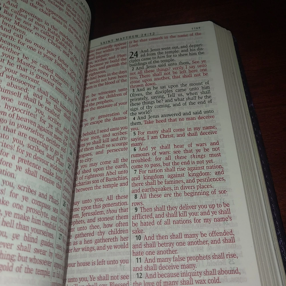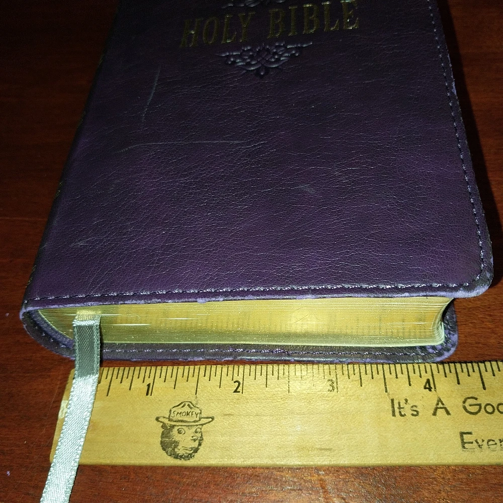 This compact KJV Bible is absolutely stunning! The rich purple faux leather cover with gold accents gives it a luxurious feel, and the red-letter text makes Jesus' words stand out beautifully. It's the perfect size to carry anywhere—great for travel or daily devotion. The pages are crisp, and the gold-edged design adds an elegant touch. A must-have for anyone who loves a classic, portable Bible with a stylish look. Highly recommend!
