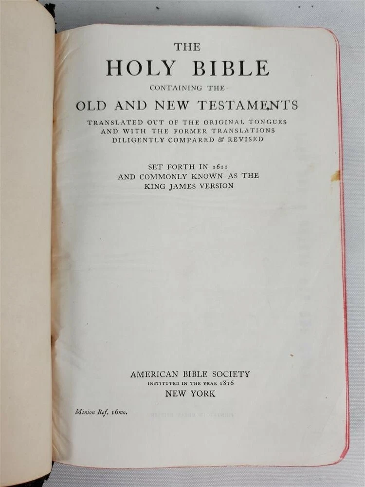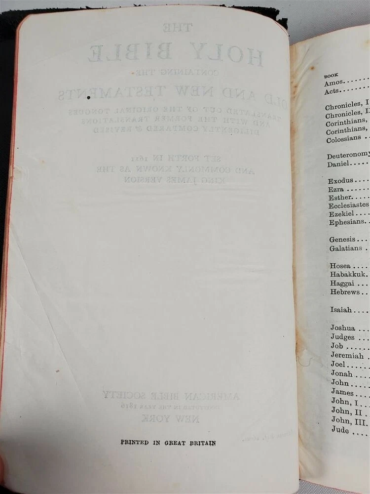 Title: Holy Bible King James Version Maps Concordance Leather American Bible Society Author: God's People Illustrator: Publisher: American Bible Society Publication Year: Unknown Publisher's Location: Format: Leather Bound Subject: Religion & Spirituality Topic: Bibles Special Attributes: Language: English Country of Manufacture: United Kingdom Edition Description: King James Version Edition Number: ISBN : Pages: About 1100 Pages Measurements: 5.50" x 7.65" Condition Grade: Acceptable Condition Notes: The covers corners and edges have wear and tearing. The surface has wear / discoloration and an embossed name. Some pages have spots but the majority are clean. Tight binding. Seller's SKU 14017586 *** FROM A SMOKE FREE ENVIRONMENT *** *** FOR EBAY OFFERS YOU MUST USE THE SHOPPING CART *** For Example, "Buy 3 Get 1 Free" ... Use the eBay shopping cart by clicking "Add To Cart" and eBay will add up your savings once you have the correct amount of items in your Shopping Cart and Checkout. THESE DEALS DO NOT WORK WITH BEST OFFERS *** Payment: All items are expected to be paid for within 4 days of purchase unless other arrangements have been made with me. Pickups … If agreed upon for item to be picked up in person, cash on pickup is the only payment accepted. Shipping: Generally everything ships same or next business day of payment being received. Occasionally something gets misplaced and takes a little longer to ship. You will be informed of the situation if this happens. In the very rare circumstance I oversell an item; your payment will be refunded in full. I sell on multiple marketplaces and sometimes inventory doesn’t update in time and I no longer have the item. I sincerely apologize ahead of time if this happens to you. Shipping Options: More shipping options/rates are available than the one listed on the main description page. Please click on the "Shipping and Payments" tab to view your other choices. Sometimes there are cheaper options available than the one listed first depending on your location. International Shipping: I ship all over the world for most items as long as I have a shipping service that goes there. Customs and Duties: Your country may charge you import fees/taxes. Buyer's are responsible for these fees. We do not cheat the fees. The item sold amount is the value listed on the customs form as merchandise. Returns: Returns are accepted on most items as long I have been notified within 30 days of the tracking showing delivery. Factory sealed new items must be returned factory sealed. Items that are listed with “Sold As Is” can’t be returned. Concert / Event Tickets can only be returned for a refund if the event is canceled permanently. No return will be accepted for rescheduling, a band cancels from the lineup, you changed your mind, girlfriend dumped you, etc. Refunds: Your payment will be refunded minus shipping unless I made a mistake with the transaction. For example, I sent you the wrong item. If I made the mistake your payment will be refunded in full. Storage Location (For Seller): 4D-87 Powered by SixBit's eCommerce Solution