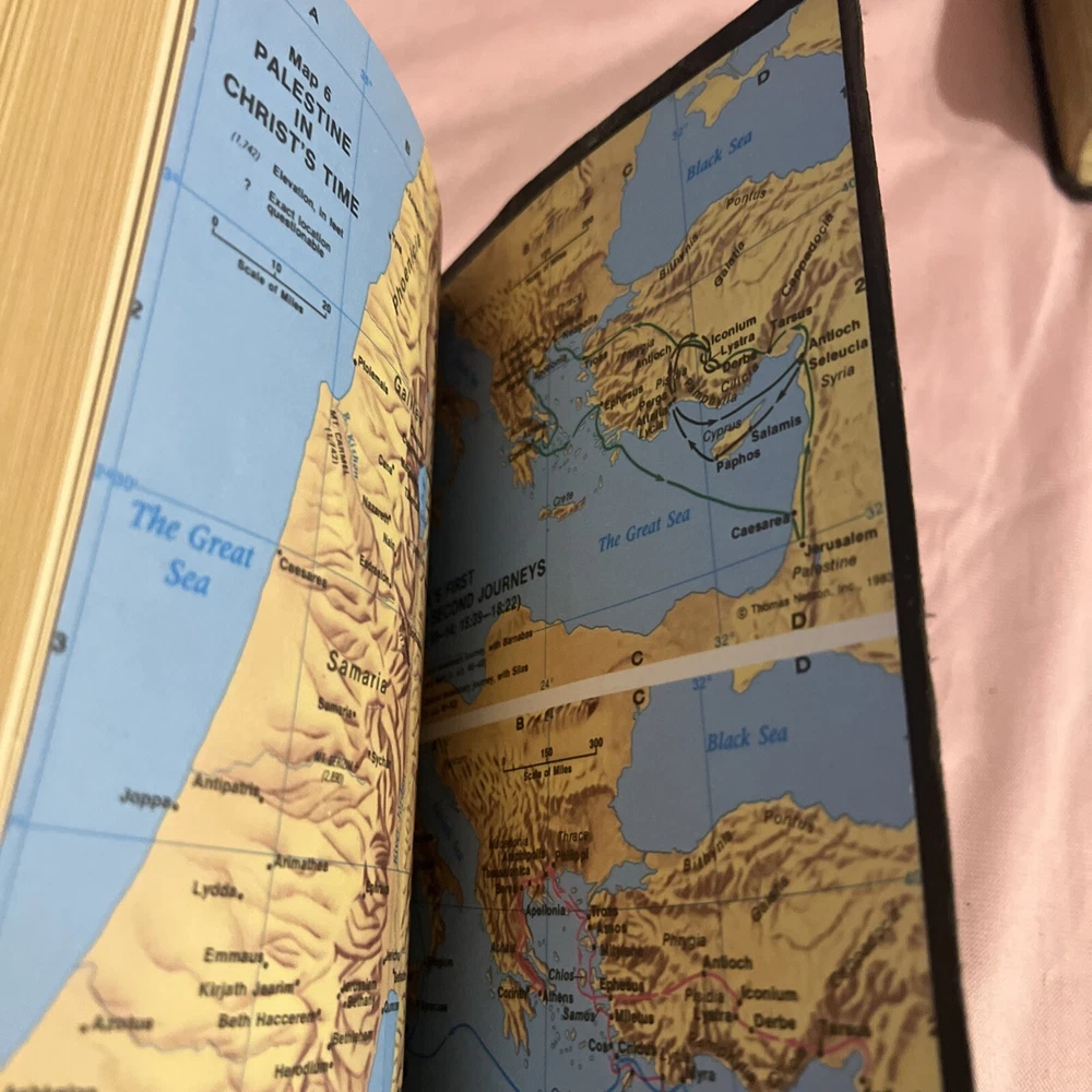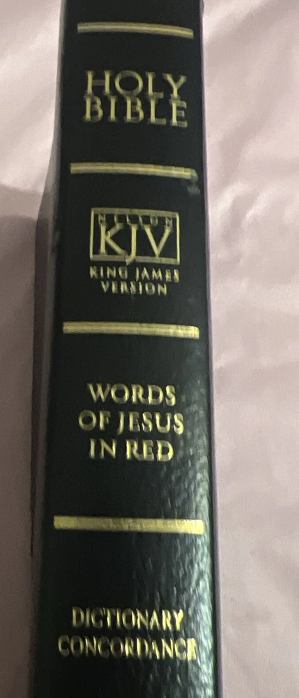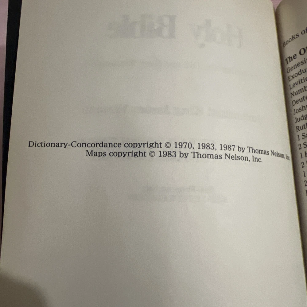 Holy Bible King James Version Nelson 162 Red Letter Dictionary Concordance 1987, Real nice readable condition This Holy Bible King James Version by Thomas Nelson is a vintage piece published in 1987. It comes in a faux leather format and includes a map. The book has 569 pages and is written in English. It is a nonfiction narrative type that falls under the category of religious and spiritual genres. The intended audience ranges from young adults, ages 2-3, ages 4-8, ages 9-12, adults, and under 2 years. The book is not personalized, inscribed, or signed, and does not have an ex libris. It is a part of the Gods word book series and has been published by Thomas Nelson. The original language of the book is Hebrew.