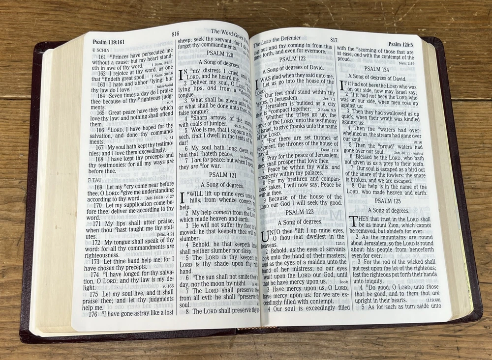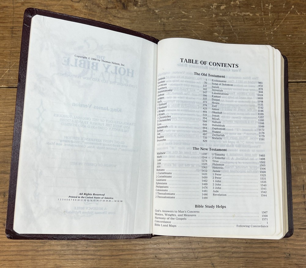 This special edition of the Holy Bible features a beautiful faux leather bound cover with large print text. The King James Version is the perfect choice for those seeking a deeper understanding of spirituality and religion. The book measures 9 inches in length and 6 inches in width, and includes maps by illustrator Thomas Nelson. This nonfiction book is an excellent addition to any collection, with no ex libris or inscriptions. It is intended for adult readers and is free from any California Prop 65 warnings. The Bible is in English and has not been personalized. Take home this special edition today and enhance your spiritual journey. There is some writing on front pages. No tears or highlighting.
