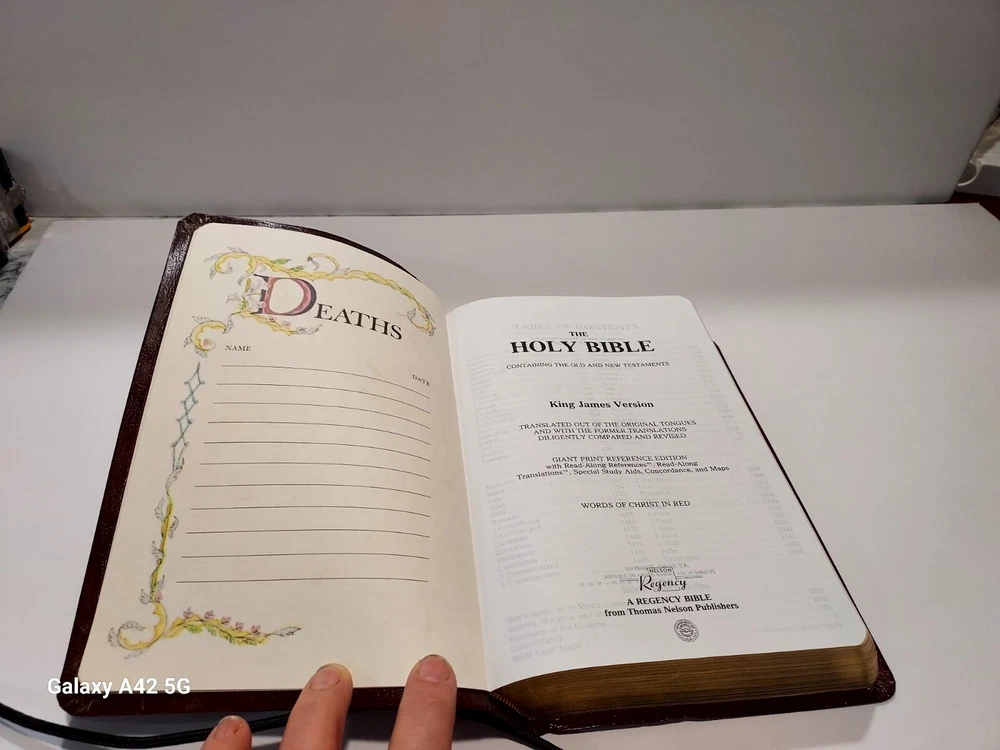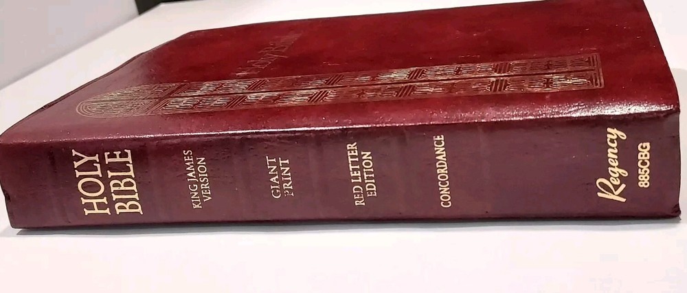 This special edition of the Holy Bible King James Version by Thomas Nelson is a vintage paperback with a faux leather binding and large print. It features a nonfiction narrative type and is intended for adults. The book is in English and has a length of 9 inches and a width of 6 inches. The Nelson Regency Giant Print Red Letter 885CBG KJV is a perfect addition to any collection and is not personalized or inscribed. It was published in 1990 and is part of the King James Version book series. The book also includes maps and is free of any California Prop 65 warning. Get your hands on this beautiful Bible today!