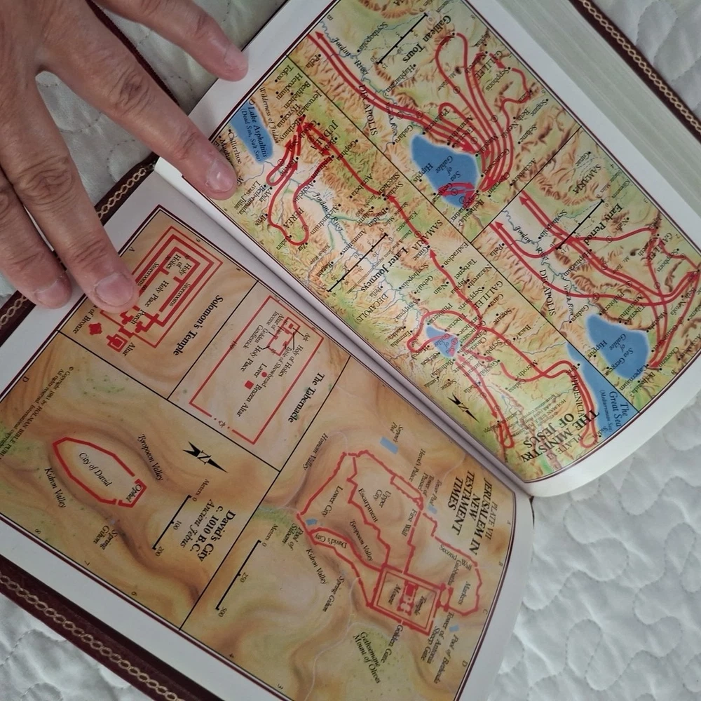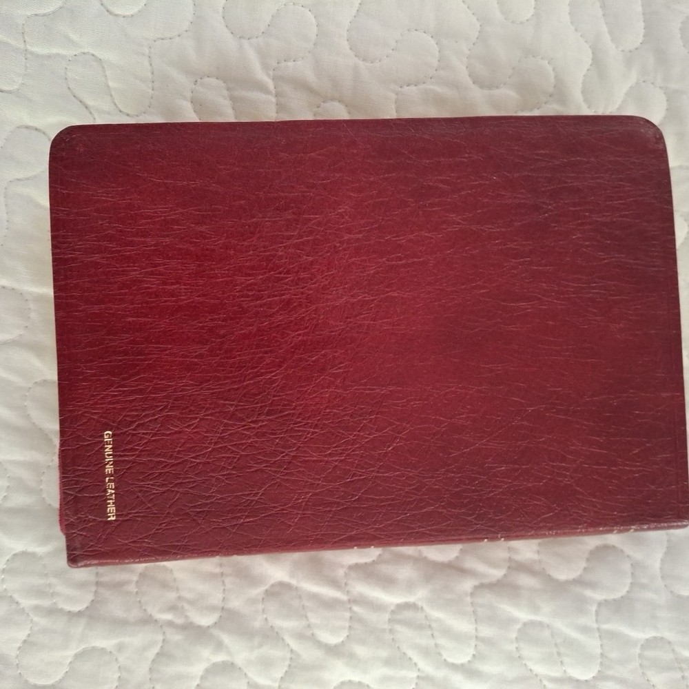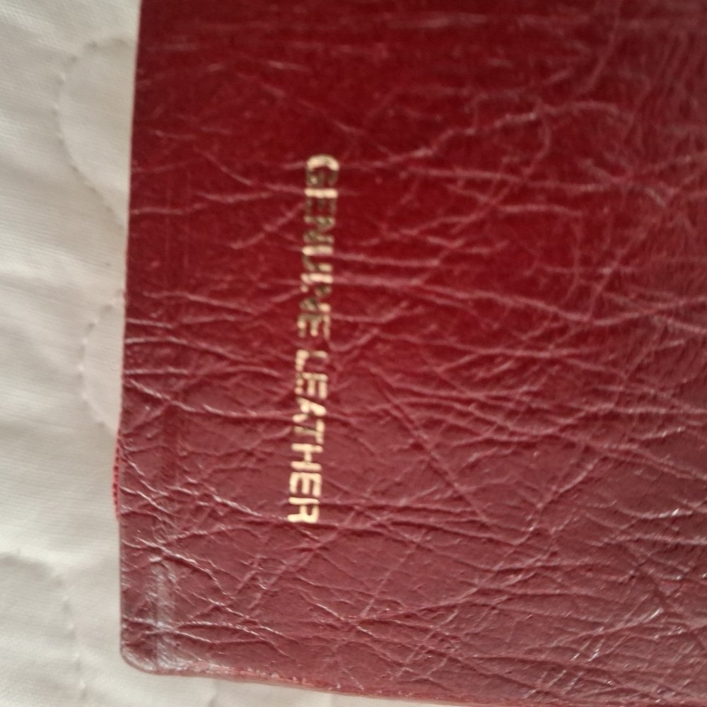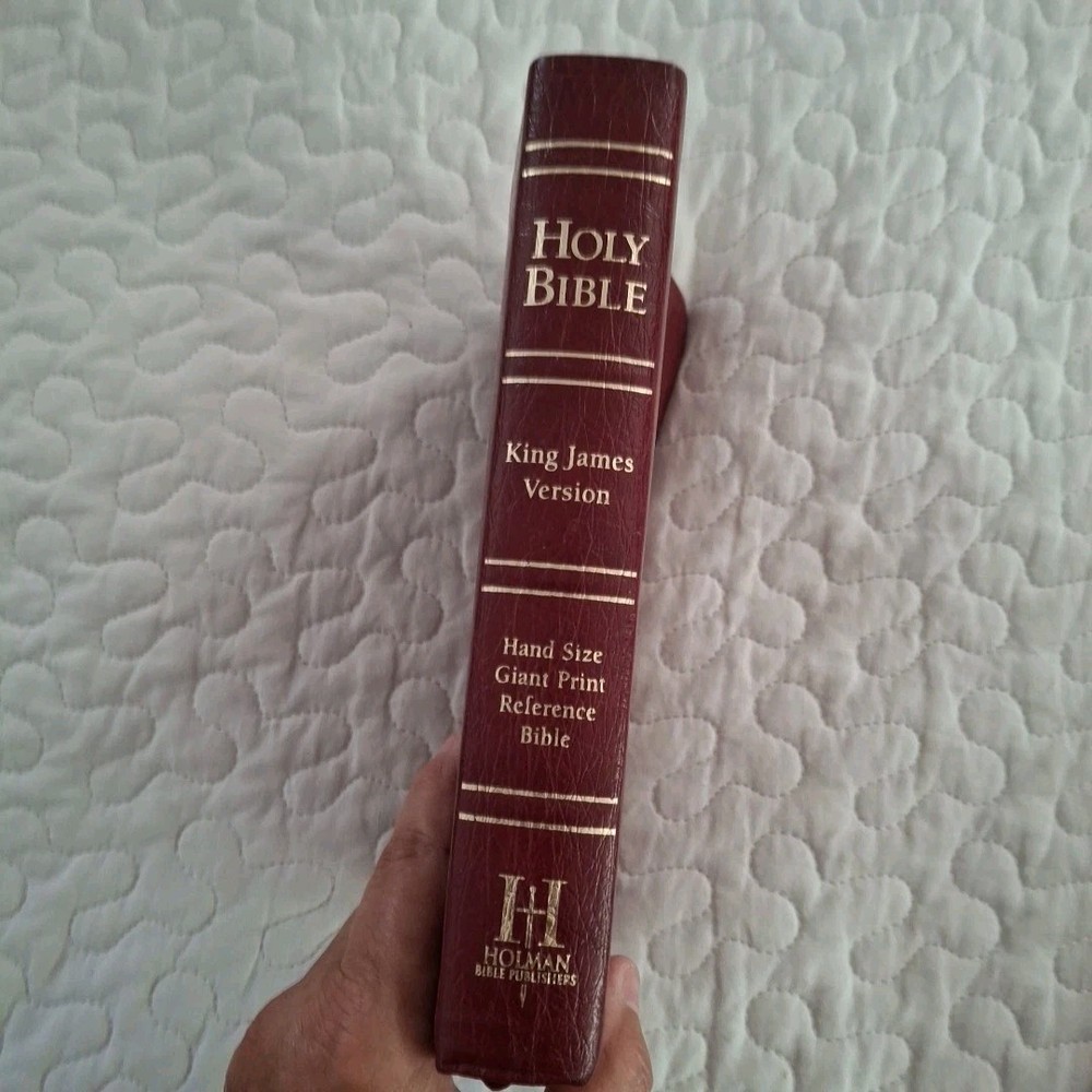 No writing but thhe is an address label in the back and one removed from page under holy matrimony, see photos. The Holy Bible King James Version Red Bonded Leather Giant Print is a beautifully crafted Bible designed for easy reading. With a large print format and red letter text for emphasis, this Bible is perfect for both young adults and adults looking for a clear and concise reading experience. The Bible features maps, making it a practical tool for understanding the geography referenced in the text. Published in 1999 by Broadman and Holman Publishers, this vintage edition retains its original charm while offering a modern translation for contemporary readers.