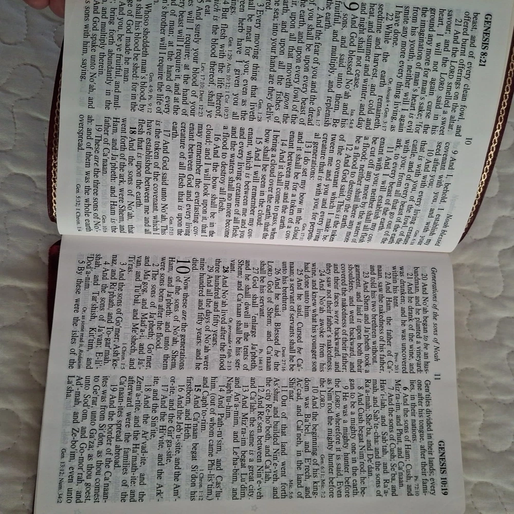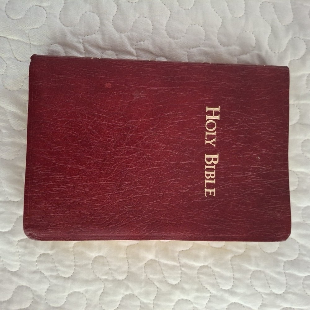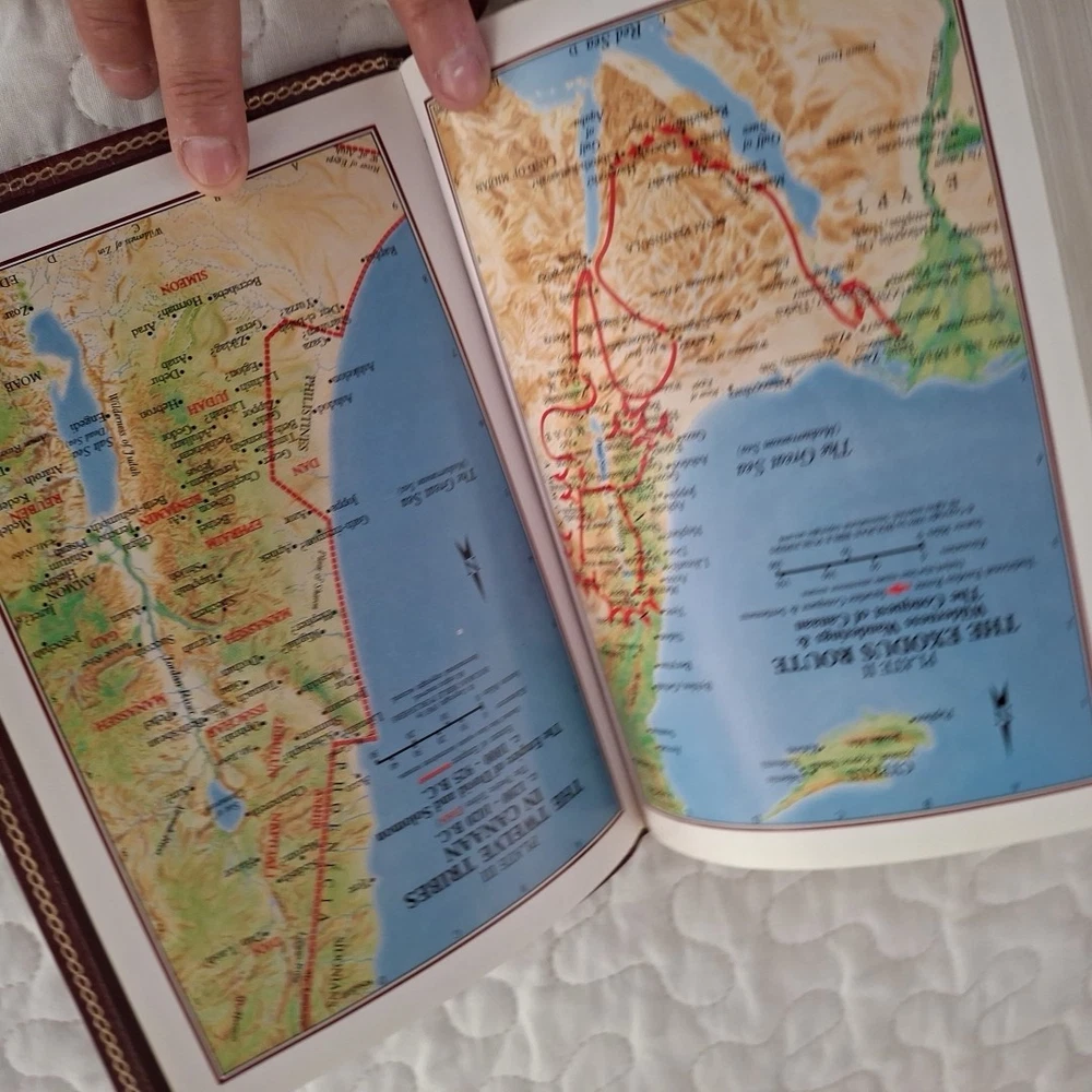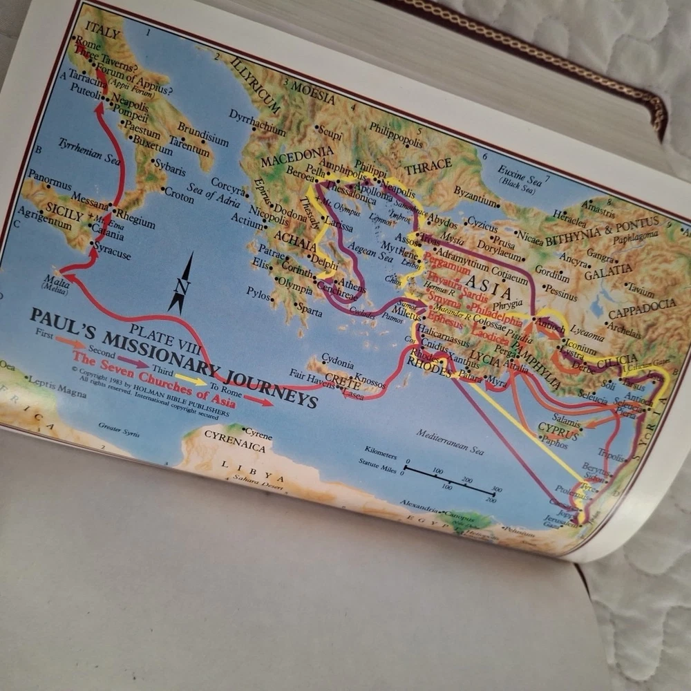 No writing but thhe is an address label in the back and one removed from page under holy matrimony, see photos. The Holy Bible King James Version Red Bonded Leather Giant Print is a beautifully crafted Bible designed for easy reading. With a large print format and red letter text for emphasis, this Bible is perfect for both young adults and adults looking for a clear and concise reading experience. The Bible features maps, making it a practical tool for understanding the geography referenced in the text. Published in 1999 by Broadman and Holman Publishers, this vintage edition retains its original charm while offering a modern translation for contemporary readers.