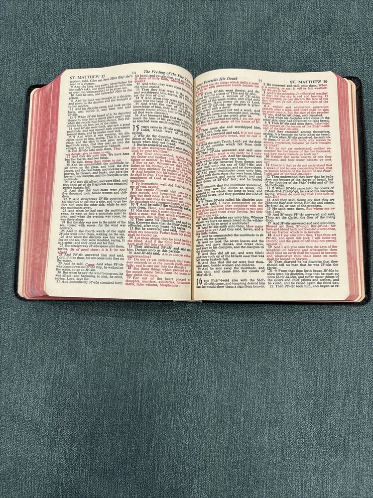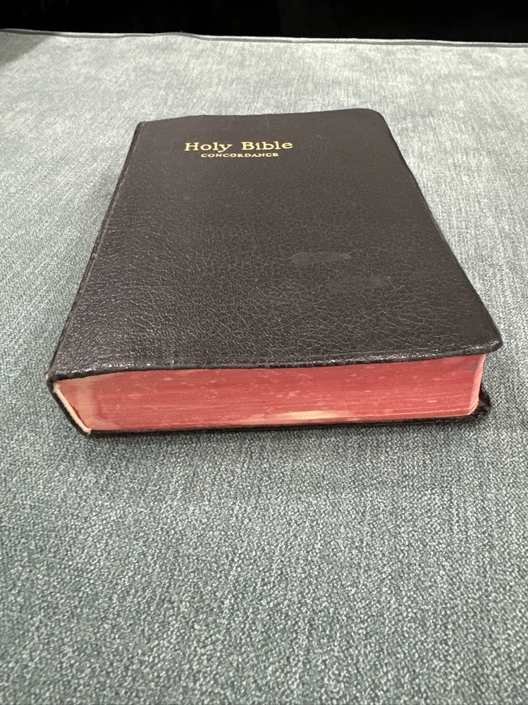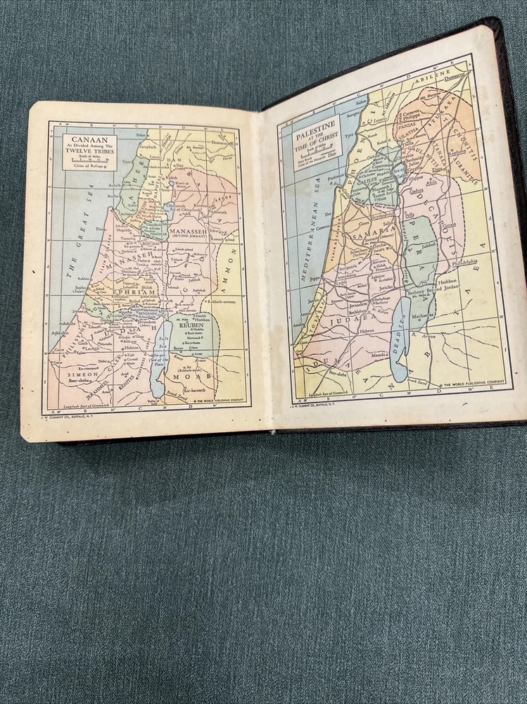 Used bible. Shows some wear, as can be seen in the pictures. Can’t find a date in it.