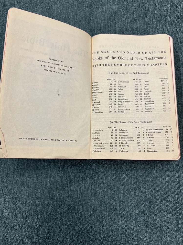 Used bible. Shows some wear, as can be seen in the pictures. Can’t find a date in it....