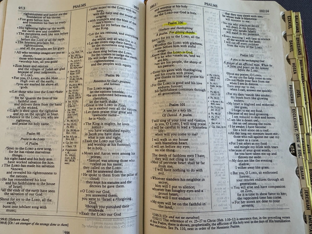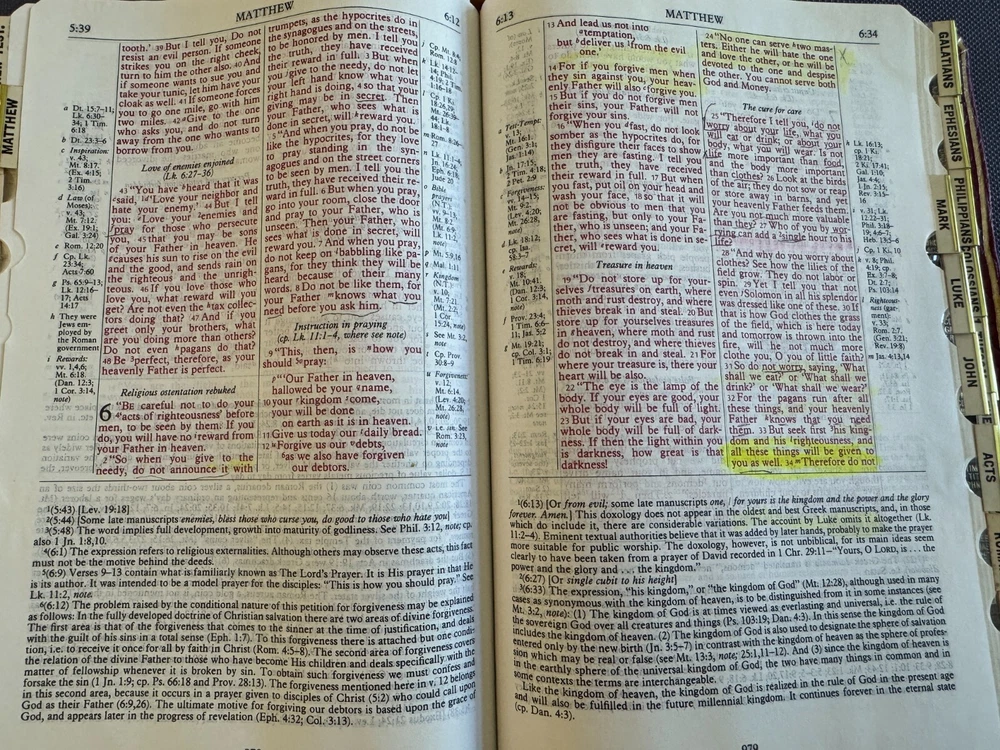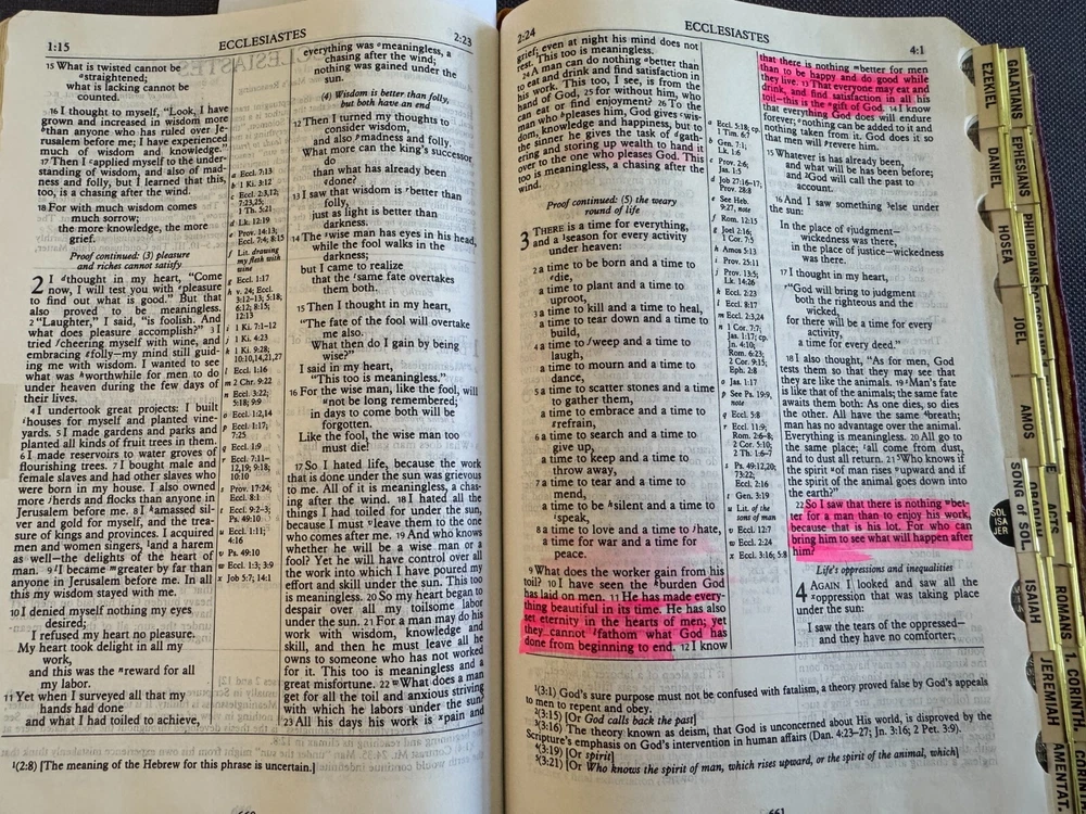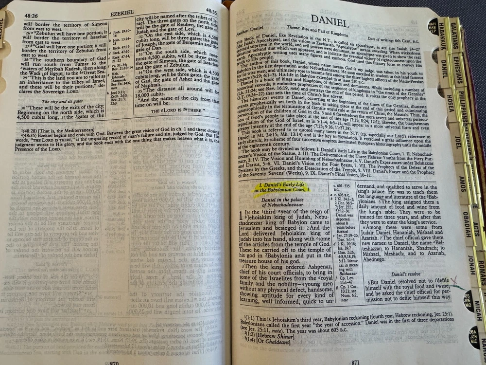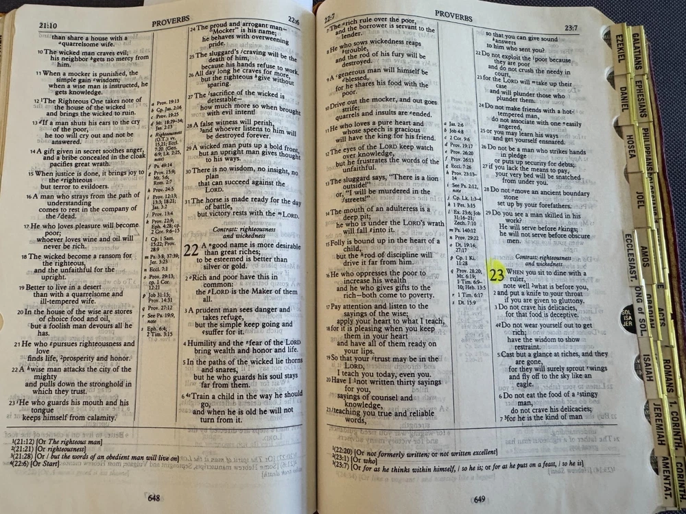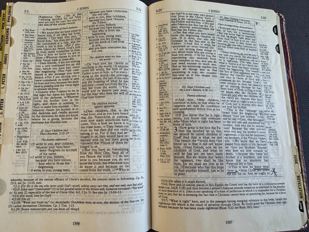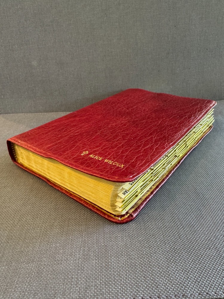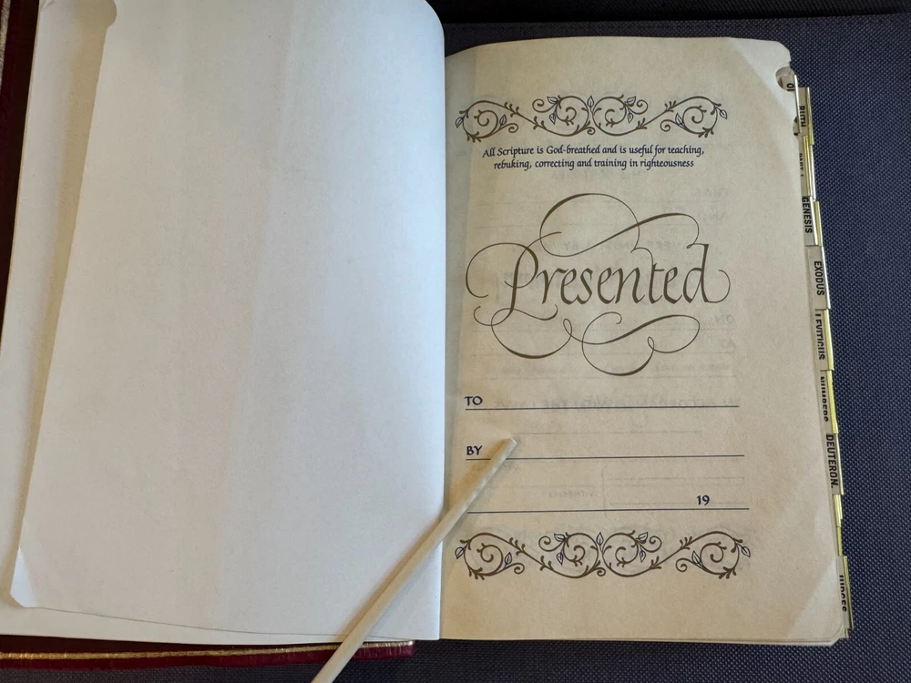 Holy Bible New International Version Red Letter Concordance New Scoffield Study System bound in burgundy leather published by Oxford University Press NY 1984. The bible is in acceptable condition with a clean cover embossed with the original owner's name, a blank "Presented To' pages but it has many pages with highlighting and some ink underlining. These can be seen in the pictures. It is model 6274, is 9-1/2" by 6-3/8" with 1,575 numbered pages and has both thumb indexes & tabs. Please view all the pictures for more information.