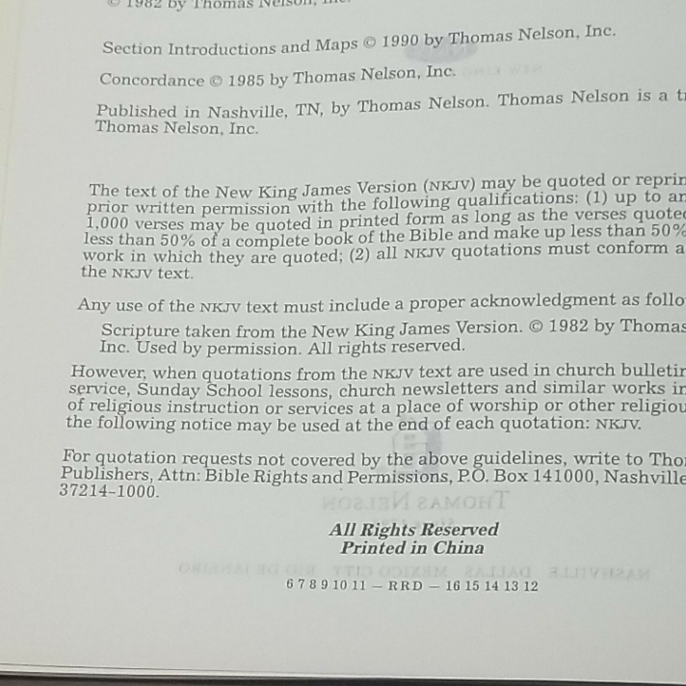 Holy Bible NKJV Compact Red Letter Nelson Gray Soft Bonded Leather Color Maps. NKJV Compact Red Letter HOLY BIBLE Gray Copyright Thomas Nelson Publishers 1990 Bonded Leather Holy Bible NKJV Copyright 1982 Red Letter Approximate Size: 7" x 4½" x 1" Condition is Very Good. Minimal writing, underlining. No name on presentation page. Outside hinge of cover showing wear. Scuffs on cover. (see photos). Weight is 11 oz. without packaging. Offers always considered. Thank you for looking. TS2.42222.19.9