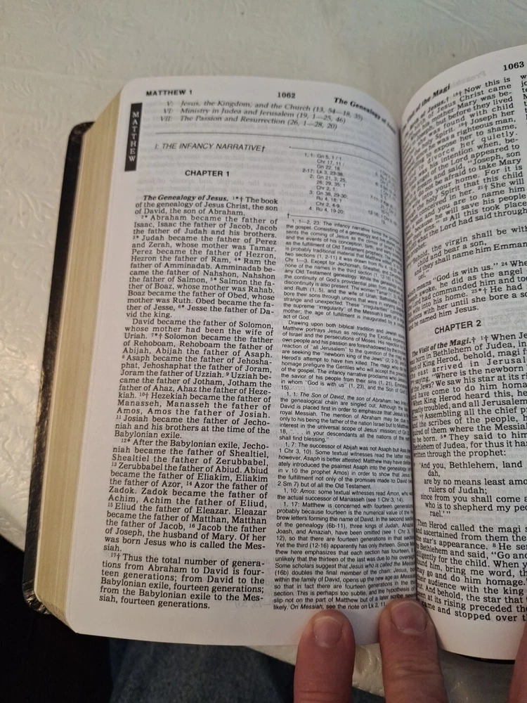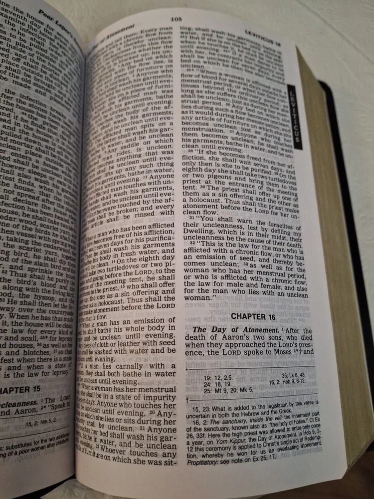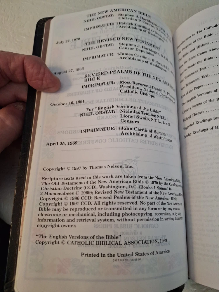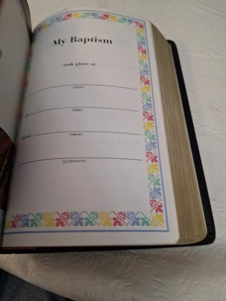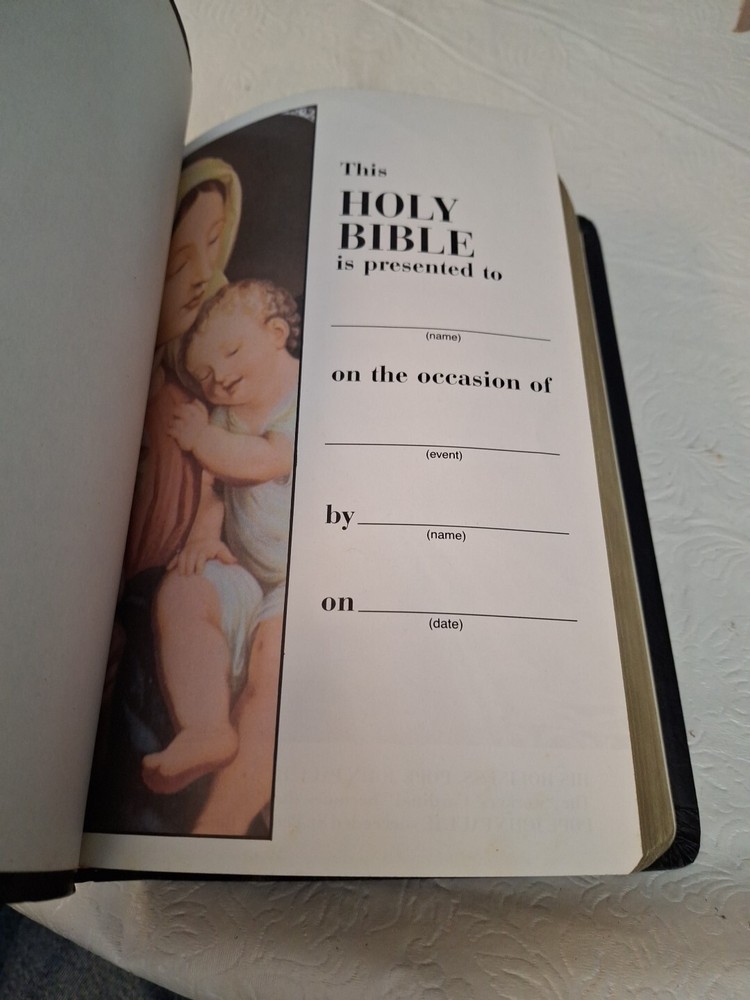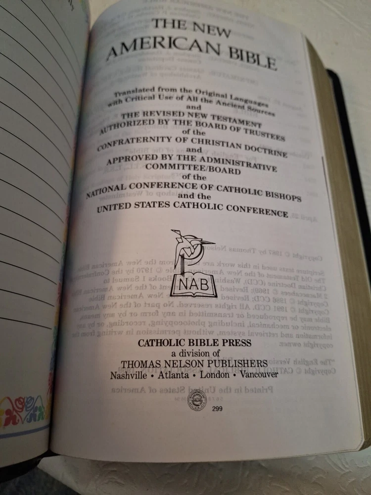 This Bible is in excellent condition—clean pages, sturdy binding, and the faux leather cover feels great in hand. The NAB translation is clear and easy to follow, perfect for daily reading or study. A fantastic find for anyone looking for a reliable, well-kept Catholic Bible!