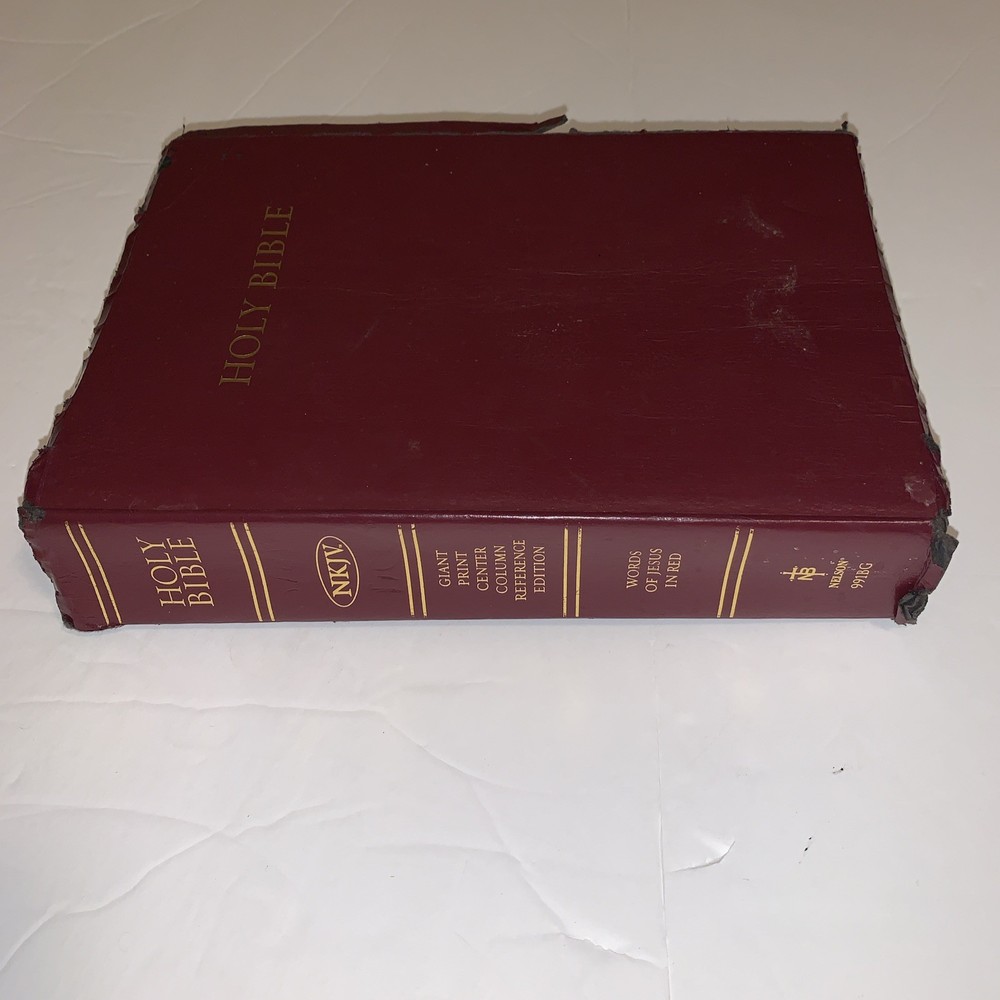 The product is a Holy Bible New King James Version NKJV in Giant Print, featuring the Words of Christ in RED and color maps. Published by Thomas Nelson in 1982, this Faux Leather Bound Bible includes a concordance and is written in English. It falls under the genre of Religious & Spiritual books, making it a valuable and visually appealing addition to any collection of religious texts. Made in the United States, this Bible is a comprehensive resource for those seeking to deepen their understanding and appreciation of the scriptures.