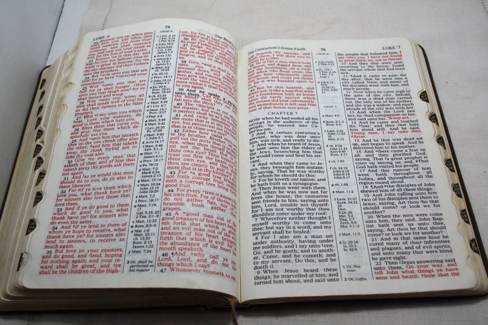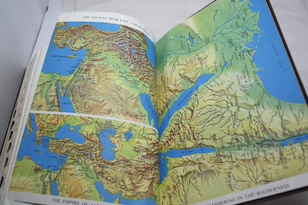 Holy Bible Reference Edition Leather Bound Brown 1972 Color Maps Scritta Paper