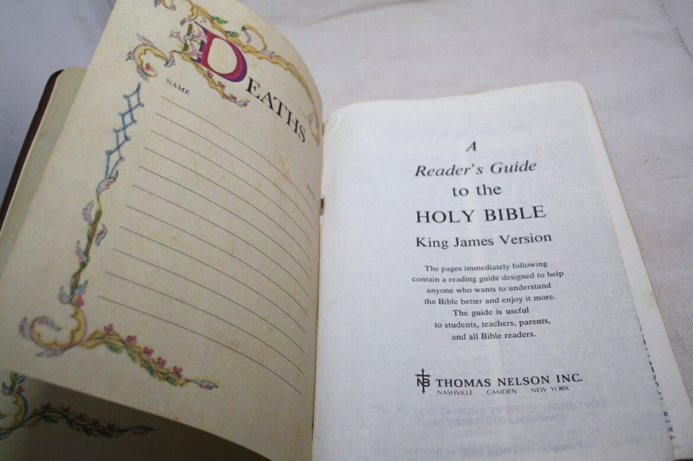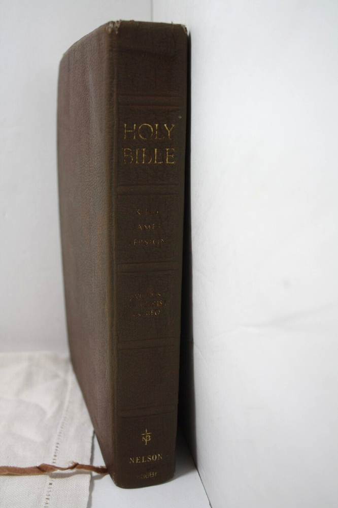 Holy Bible Reference Edition Leather Bound Brown 1972 Color Maps Scritta Paper...