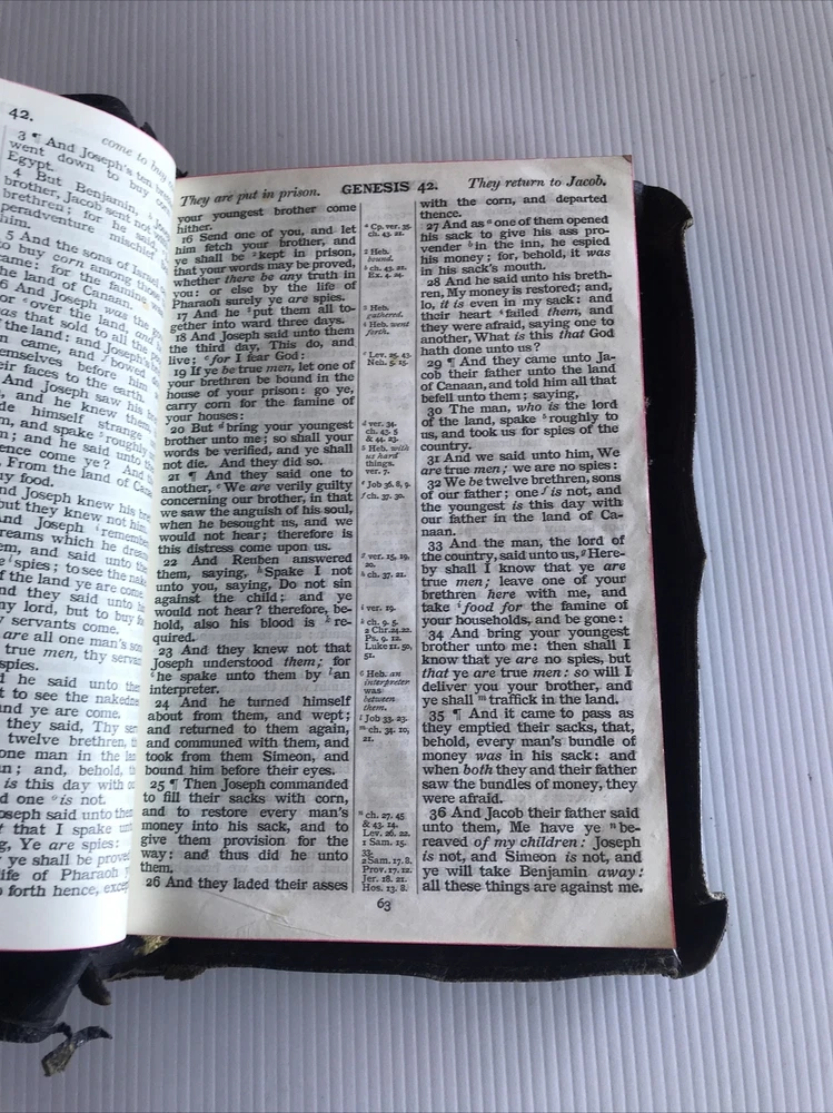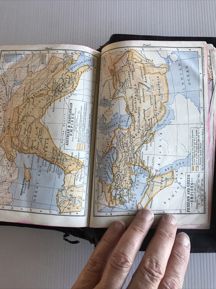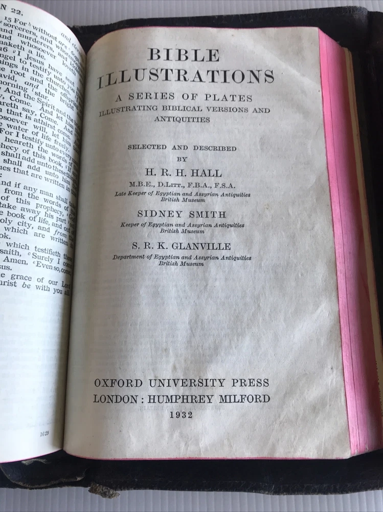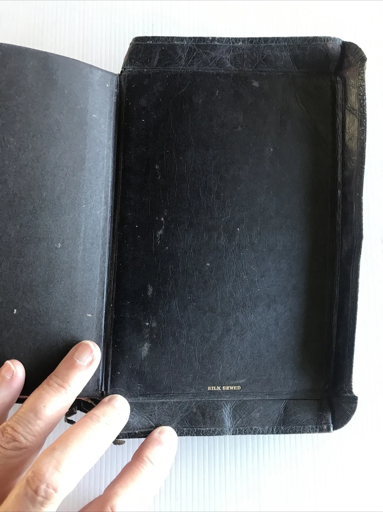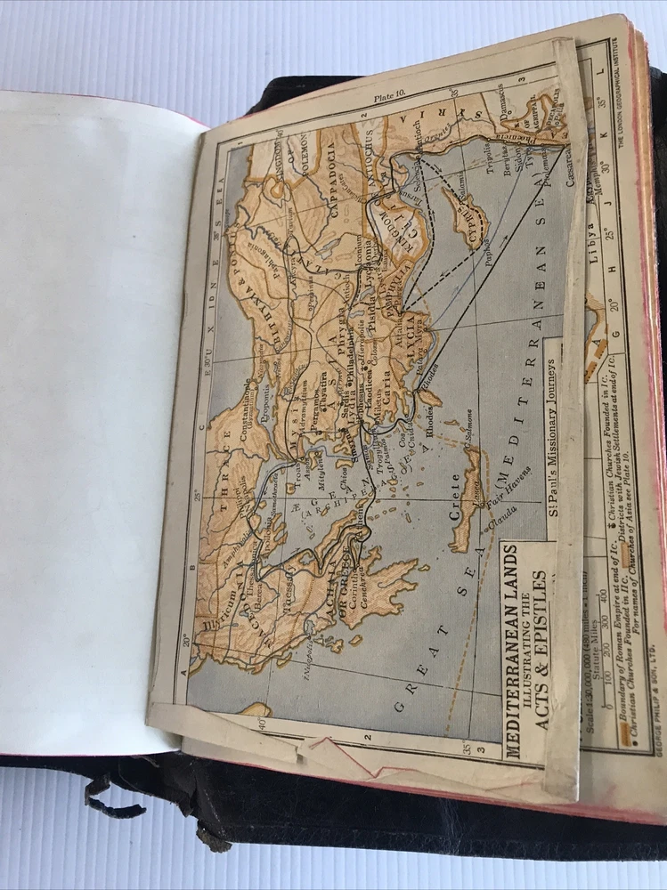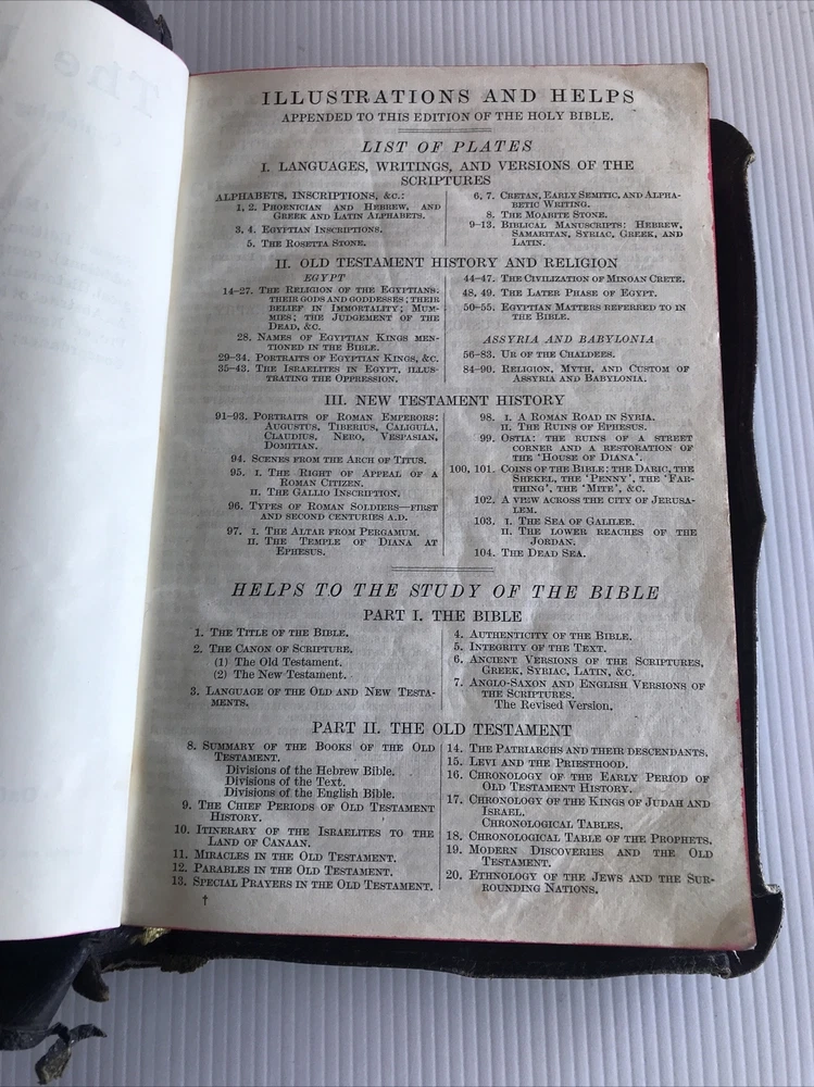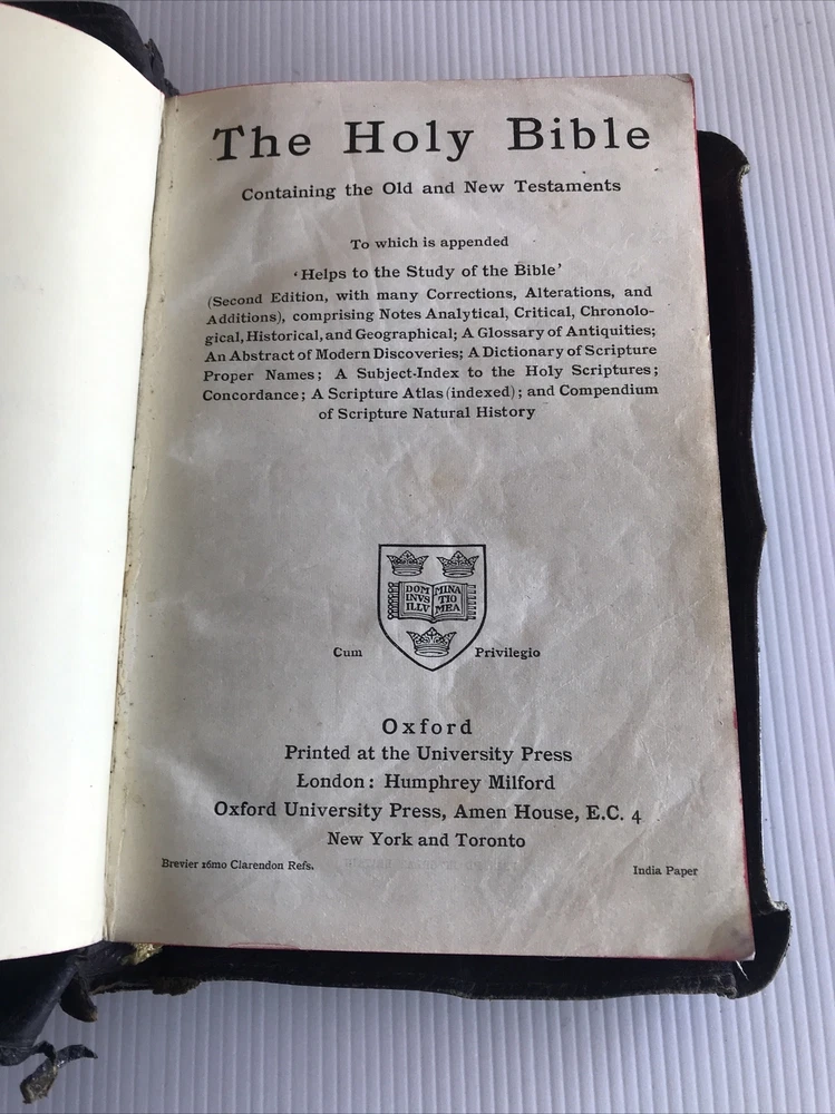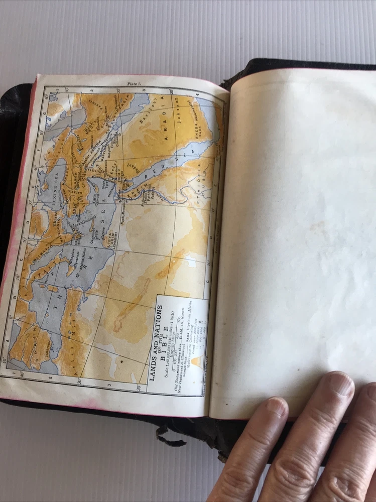 Holy Bible Teacher’s Edition Revised Help Oxford University Press Oxford Binding Silk Sewed 1932 Leather Bound Gold Embossed Maps and Illustratations This is an old bible with wear on the cover and some water damage. One of the maps pages has come away from the binding. Please see pictures