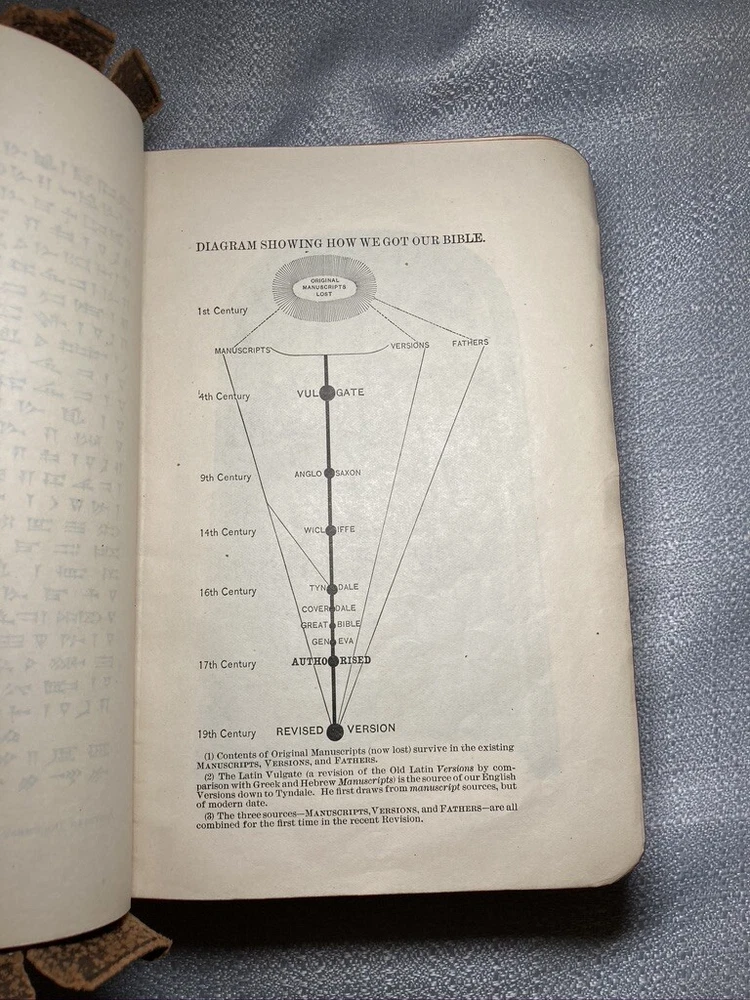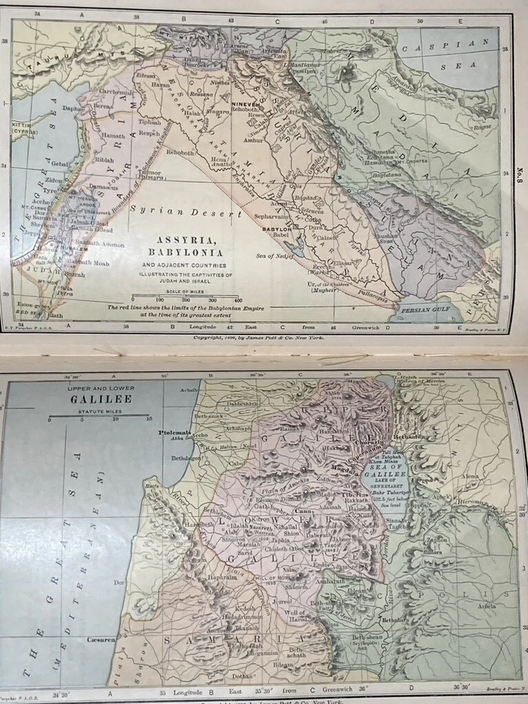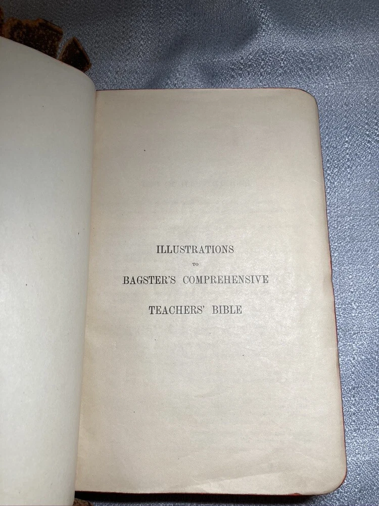 Holy Bible, The Comprehensive Teachers' Bible (c.1874) HTR Illustrated with Maps. Tight binding leather is worn with age , cover is Silk Sewn. A great addition for someone seeking to delve deeper into their faith or a collector of religious antiquities. please refer to pictures and thank you for your interest. Print date is based on online research as there is no date in the book for the print date.