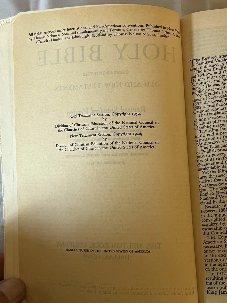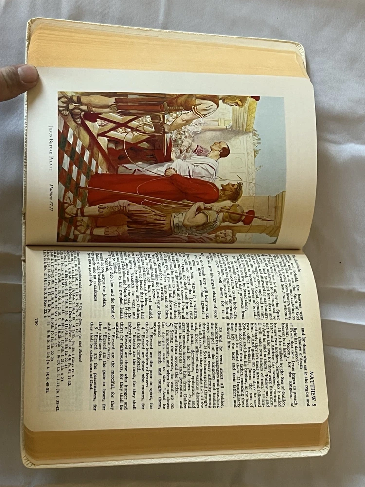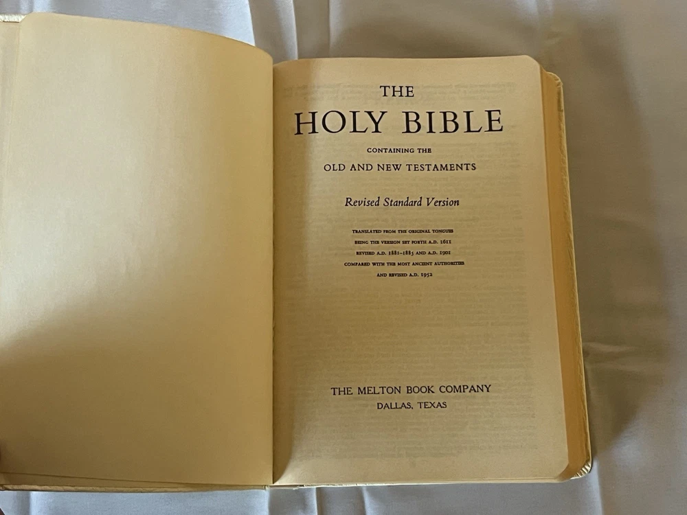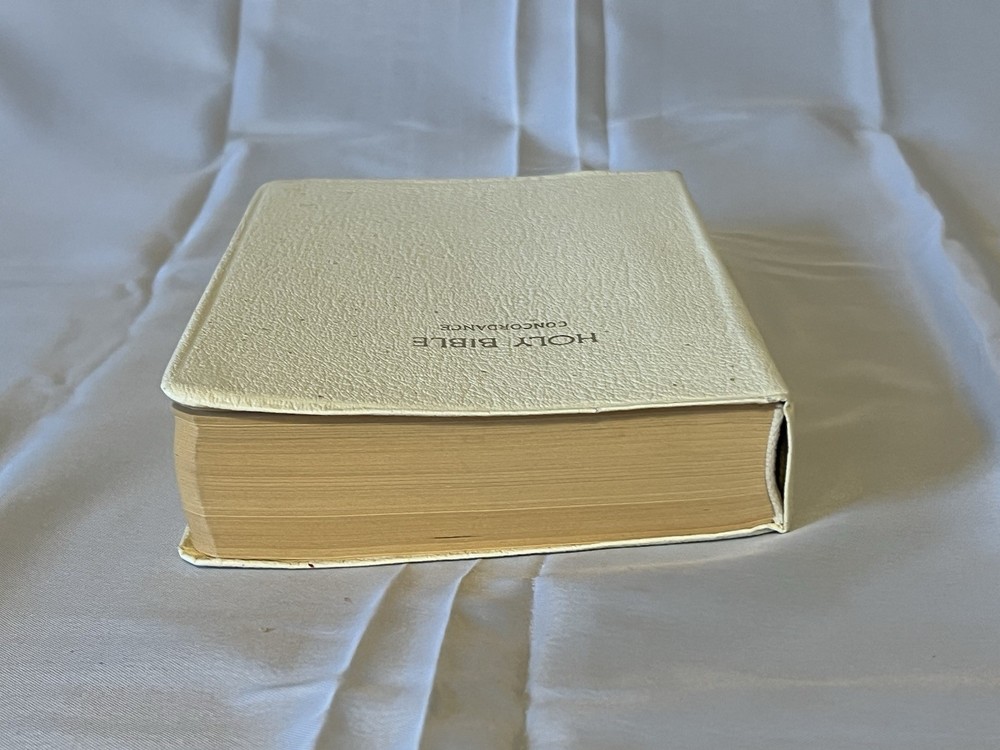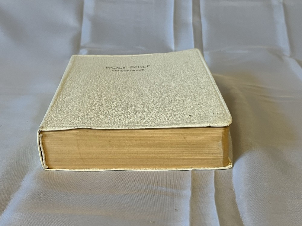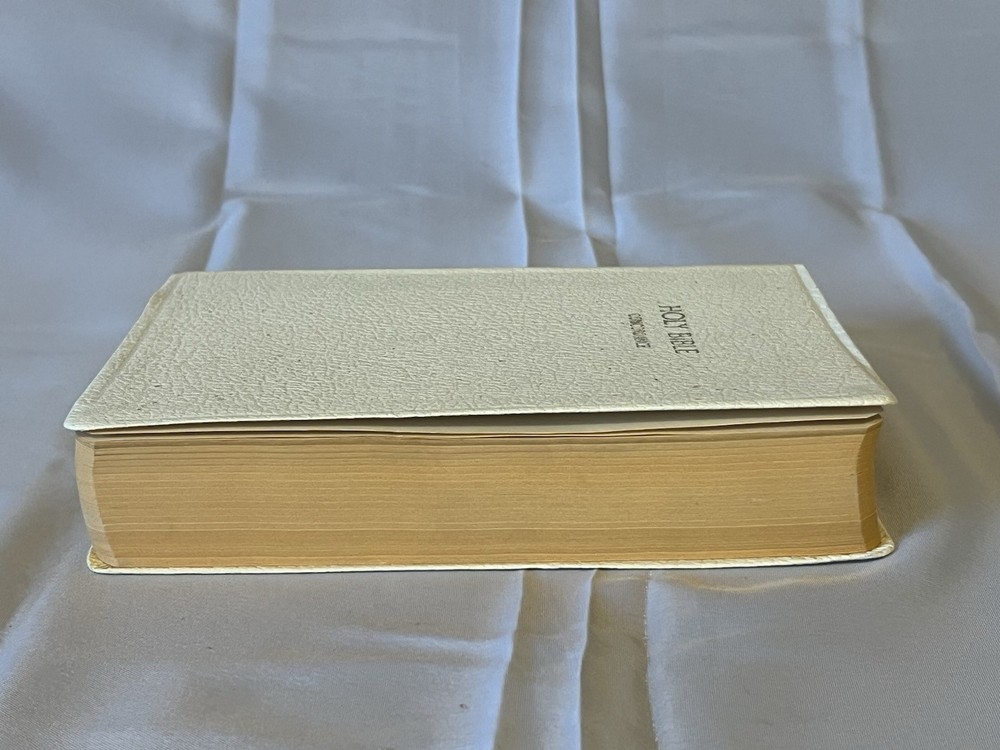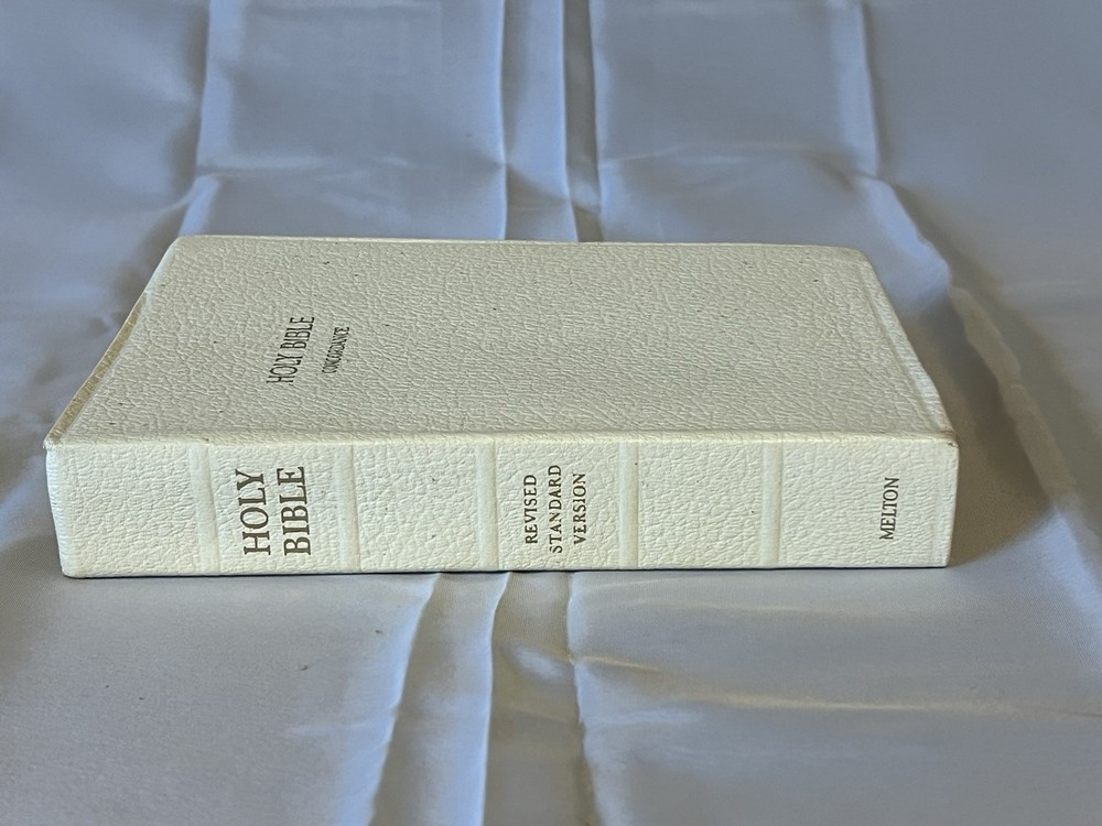 This vintage Holy Bible from the 1950s is a must-have for any collector or lover of religion and spirituality. The white leather-bound cover is in excellent condition and features beautiful illustrations and maps. The pages are filled with valuable information, including a concordance and original text by God. Published by The Melton Book Company, this Bible is a rare and original piece that will make a great addition to any collection. The Bible is in English and is perfect for those interested in Christianity and Bibles.