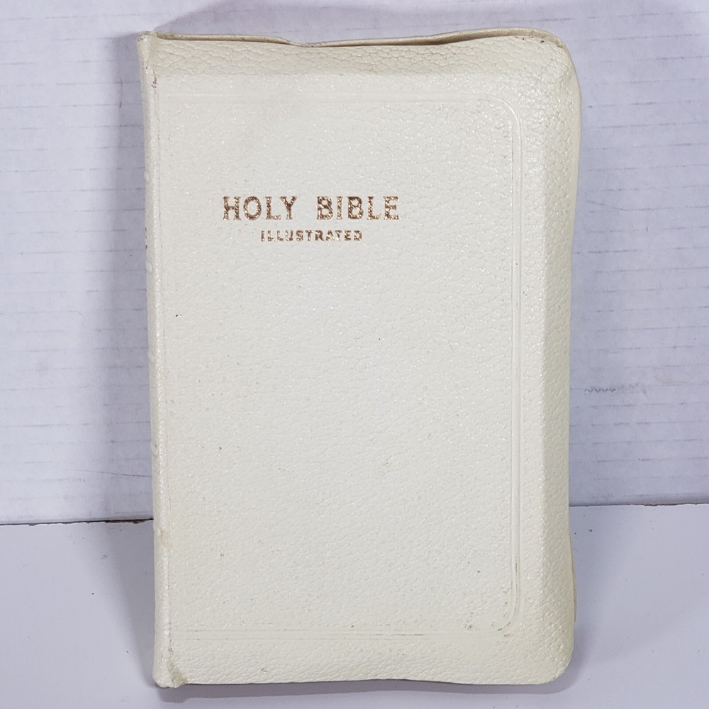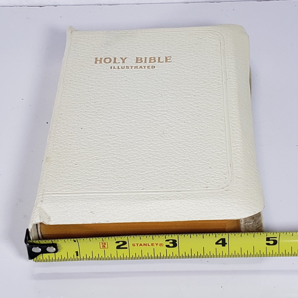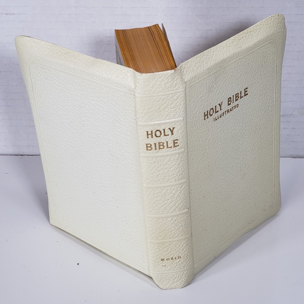 Experience the Vintage Holy Bible World White Faux Leather KJV illustrated Self Pronouncing Edition. This religious book is a must-have for young adults, ages 9-12, and adults seeking spiritual guidance. The Bible is an original English language publication with special attributes including a map and illustrations. The WORLD Publishing Company ensures the quality of the content and format, with no modifications made to the original edition. .Clean Vintage Book is in Good-VG Condition .Please see attached pictures and judge the condition by yourself what you see is exactly what you will get.