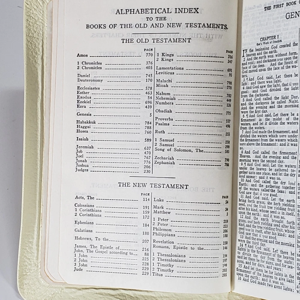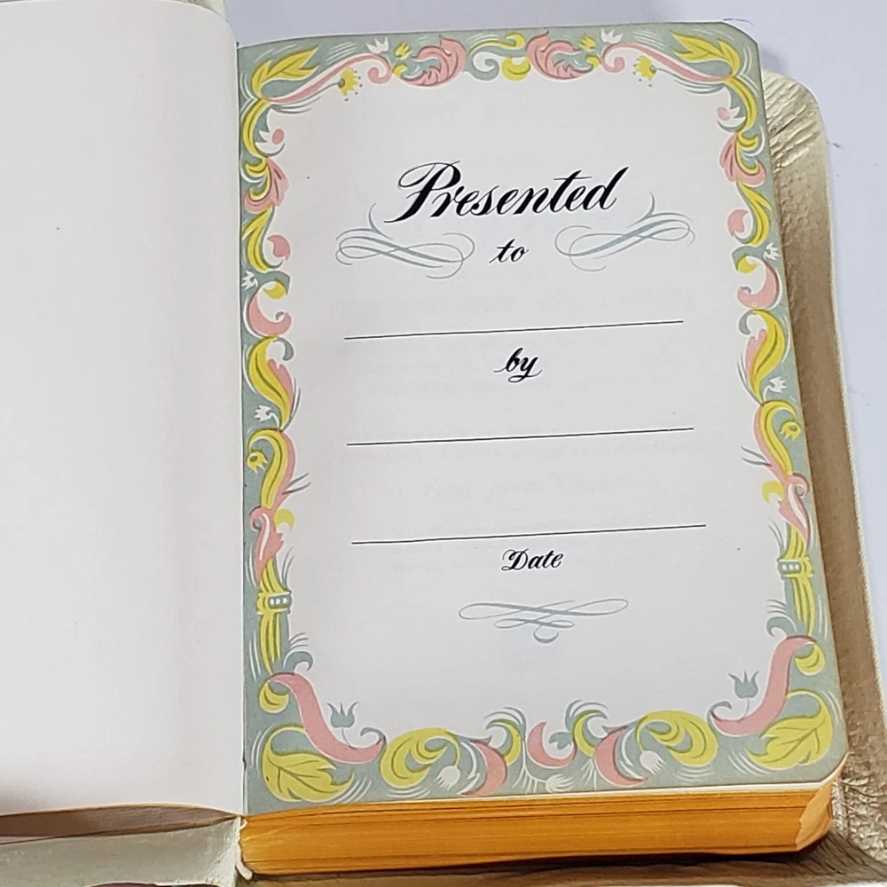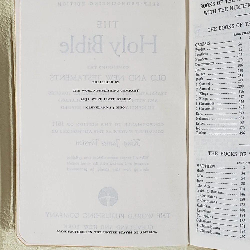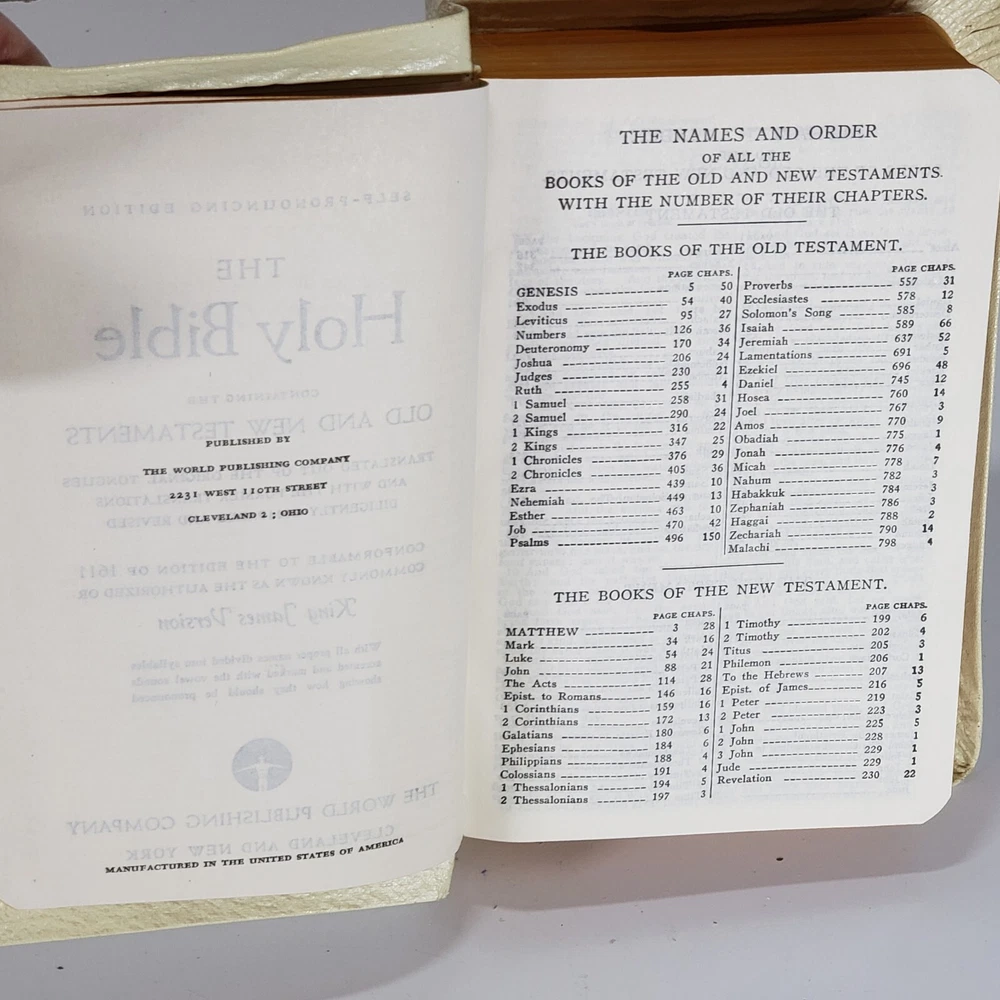Experience the Vintage Holy Bible World White Faux Leather KJV illustrated Self Pronouncing Edition. This religious book is a must-have for young adults, ages 9-12, and adults seeking spiritual guidance. The Bible is an original English language publication with special attributes including a map and illustrations. The WORLD Publishing Company ensures the quality of the content and format, with no modifications made to the original edition. .Clean Vintage Book is in Good-VG Condition .Please see attached pictures and judge the condition by yourself what you see is exactly what you will get.
