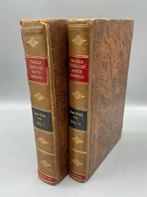 Travels Through the States of North America and the Provinces of Upper and Lower Canada, During the Years 1795, 1796 and 1797 (2 volume) Author: Weld, Isaac Title: Travels Through the States of North America and the Provinces of Upper and Lower Canada, During the Years 1795, 1796 and 1797 (2 volume) Publication: London: Printed for John Stockdale, 1800 Edition: Third edition Description: Leather bound. Two volume set. 427, 375pp. Octavo [22 cm] Nicely rebound in tan 3/4 quarter calf over the original marbled leather boards. Backstrip has red and black gilt stamped leather labels with gilt rules. Floral gilt stamped pattern to the rest of the backstrip. The front board of volume 1 is nearly detached, and the front free endpaper, map, and title page are detached but present. Both volumes internally clean. Advertisements have been removed from both volumes. The large folding map, 'Part of the United States of North America', measures 48 cm by 43 cm, and is present at the front of volume one. Large map shows America as it was then known with the western edge being Detroit and Kentucky. The state lines are hand colored. A few short closed tears at the folds. Volume one also contains seven views, two plans (Washington and Quebec) and a map of upper and lower Canada. Volume two contains five views, four of these are about Niagara Falls. Nice early American travel narrative by this Irish writer and artist. Howes W235. Sabin 192541. Good. Weld's Travels Through the States of North America and the Provinces of Upper and Lower Canada was an instant success. It went through several editions, and was translated into several different languages. It is worth noting that Weld's work is more favorable towards Canada than it is towards the United States. Seller ID: 27125 Subject: Western Americana Ken Sanders Rare Books Ken Sanders Rare Books is a full-service antiquarian bookshop in downtown Salt Lake City. We have a vast inventory of used and rare books, a handful of new books, and an ever-changing selection of art, ephemera, maps, photographs, and postcards. We specialize in Utah & the Mormons and Western Americana, with emphases on the Grand Canyon and the Colorado River, Yellowstone, and other national parks. The literary West is well-represented here, with deep selections of Edward Abbey, Wallace Stegner, B. Traven, and more. We offer rare and collectible books in many subjects, including Literature, Art, Photography, Children's and Illustrated Books, and Wordless Novels. Proprietor Ken Sanders has been buying, selling and collecting books since childhood. He co-owned and ran the legendary Cosmic Aeroplane Bookstore in the 1970s and founded Dream Garden Press , our in-house publishing company, in 1980. Terms & Guarantee All orders ship within 2 business days after receiving payment. Standard mail is USPS Media Mail. Delivery typically takes 7-10 business days. Expedited and international shipping options are also available. All items are guaranteed to be as described or they may be returned within 30 days of receipt for a full refund (prior notice appreciated). We are members of the ABAA (Antiquarian Booksellers Association of America) and the Independent Online Booksellers Association (IOBA), and we adhere to these associations' strict ethical guidelines and conditions of sale. Feedback We leave feedback for buyers once they have posted feedback for us. If you are unhappy with any aspect of a transaction with us, please contact us immediately. We work hard to keep buyers happy and to resolve the rare problem promptly. This listing was created by Bibliopolis.