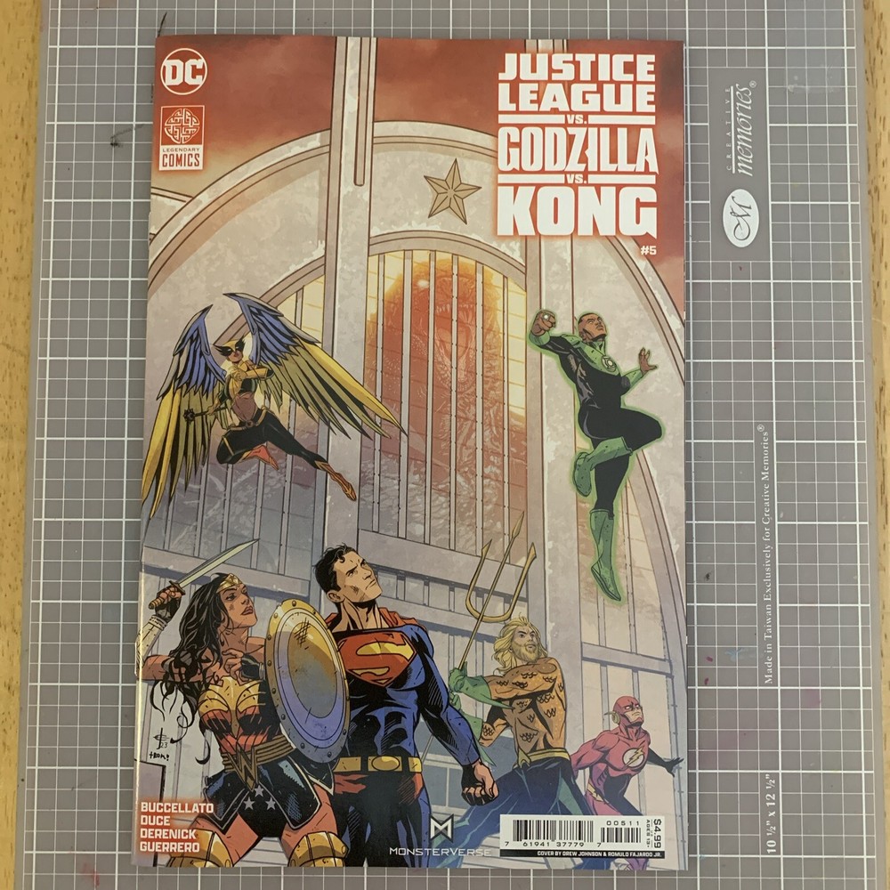 Experience the ultimate battle of the century with Justice League vs. Godzilla vs. Kong #5. This action-packed comic book features various beloved characters from the US Comics tradition in a fight for the ages. Get ready for an adventure full of bad girls, superheroes, and fantasy. This variant cover, first printing, and 1st edition comic book is in near mint condition, and comes with a board and bag. Published by DC Comics in April 2024, this single issue is perfect for general audience of all ages who love action and adventure. Don't miss out on this epic battle, grab your copy now.