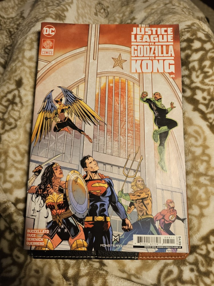 This Justice League vs Godzilla vs Kong #5 (Of 7) Cover A Drew Johnson NM comic book features an epic battle between the iconic monsters and the world's greatest superheroes. The comic is in near-mint condition and ready to be added to your collection of collectibles, comic books, and graphic novels. The comic book is part of the US Comics tradition and features characters from the DC Comics universe. It weighs 75 grams and has issue number 5 in the Justice League series title. Add this exciting addition to your collection today!