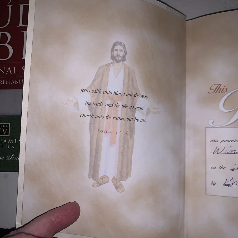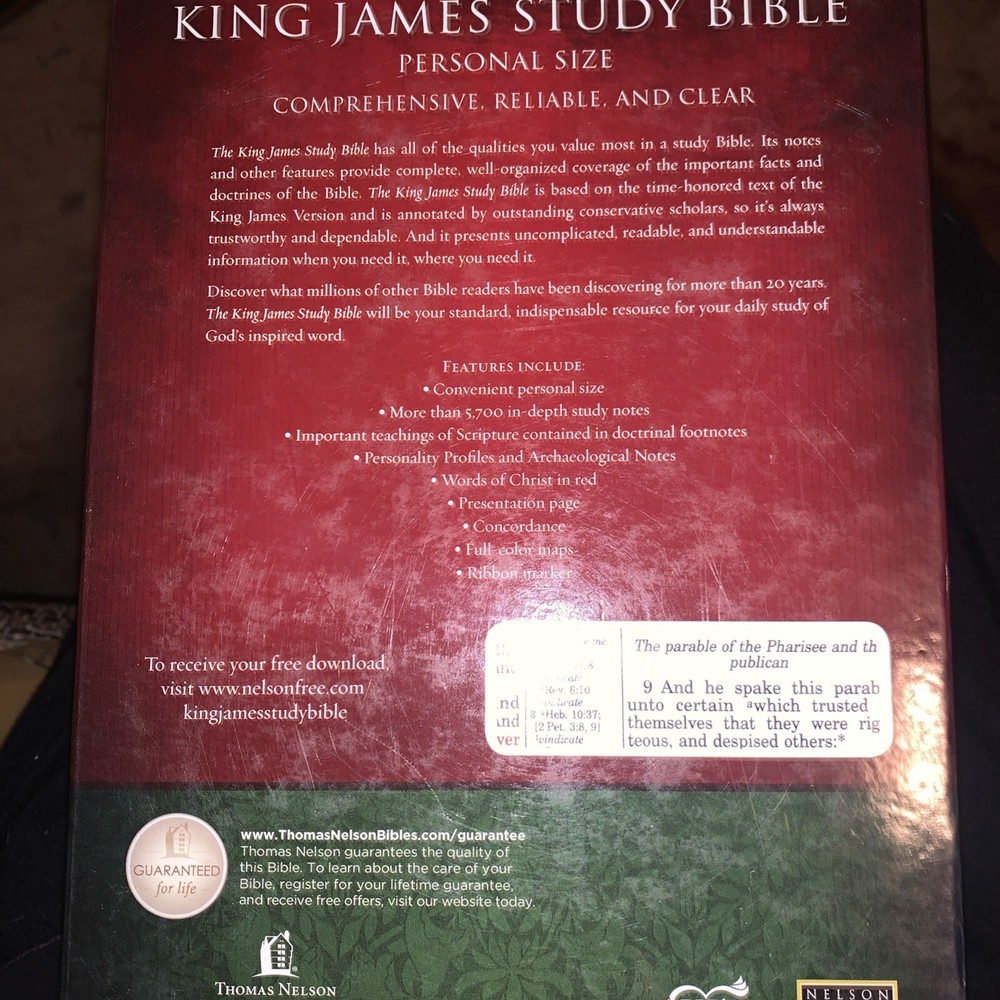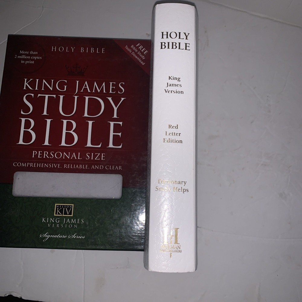 Immerse yourself in the timeless wisdom of the Bible with this King James Study Bible by Thomas Nelson Publishing Staff. A treasured resource for both personal and academic use, this vintage 1979 edition is bound in elegant white leather with a dust jacket /box for protection. The Bible includes a range of features to enhance your reading and study experience, such as a comprehensive dictionary, study helps, and a map of biblical places. With 760 pages of rich content, this Bible is suited for a wide audience, from ages 9-12 to young adults and adults. The red letter edition highlights the teachings of Jesus Christ in the Gospels, making it a focal point for devotion and study. The personalized plate has been filled in
