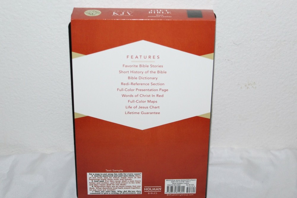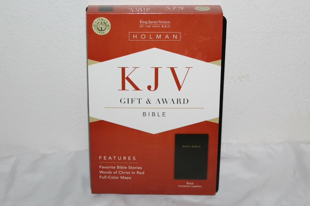 KJV Gift and Award Bible Black Imitation Leather Holman Color Maps Jesus words in red Packed full of special features and priced for bulk buying, this Gift and Award Bible is a great way to reward young people at church, in VBS, in Sunday School, or at home. Features include color presentation page, new map sections, words of Christ in red, study aids, Bible history, self-pronouncing text, dictionary, Redi-Reference section, 'Life of Jesus' chart, and color maps. Packed full of special features and priced for bulk buying, this Gift and Award Bible is a great way to reward young people at church, in VBS, in Sunday School, or at home.