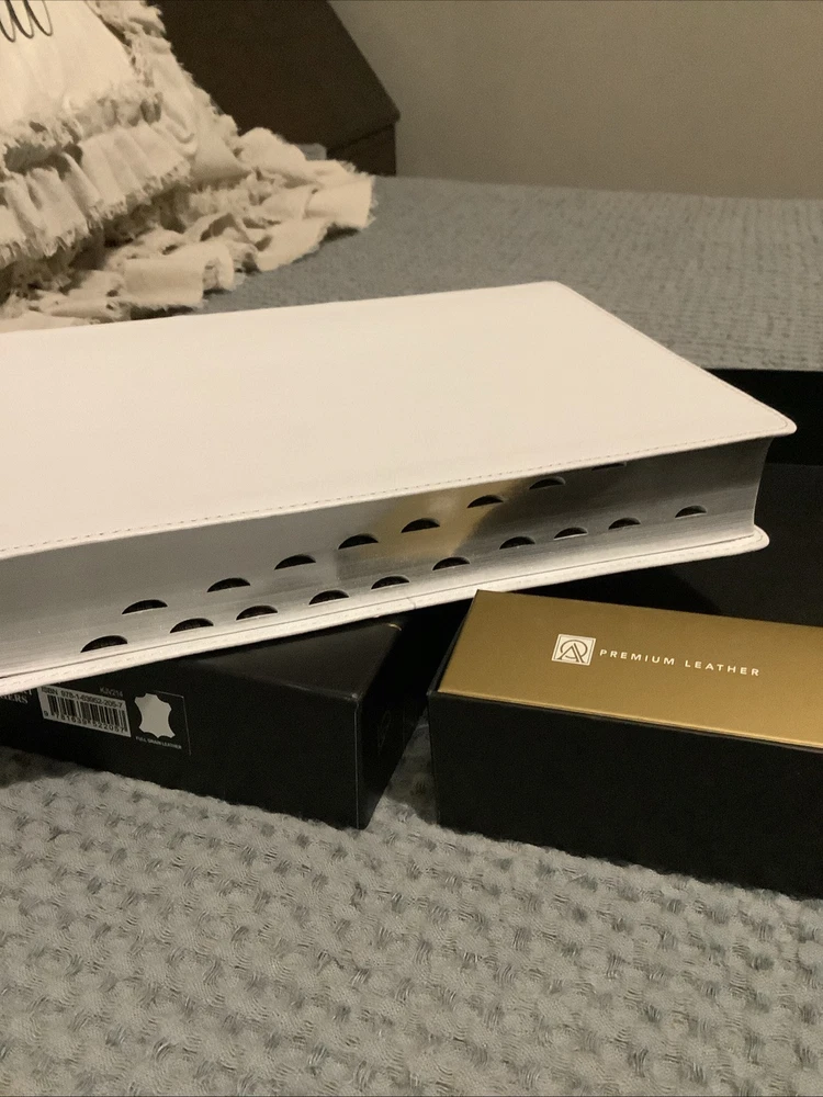 This stunning KJV Bible is a true treasure! The giant print makes reading effortless, while the luxurious white full-grain leather feels amazing in your hands. Perfect for special ceremonies or daily devotion, the elegant design and premium quality make it a beautiful keepsake. The red-letter text highlights Christ's words beautifully, and the thumb index helps you navigate with ease. A perfect blend of tradition and craftsmanship!