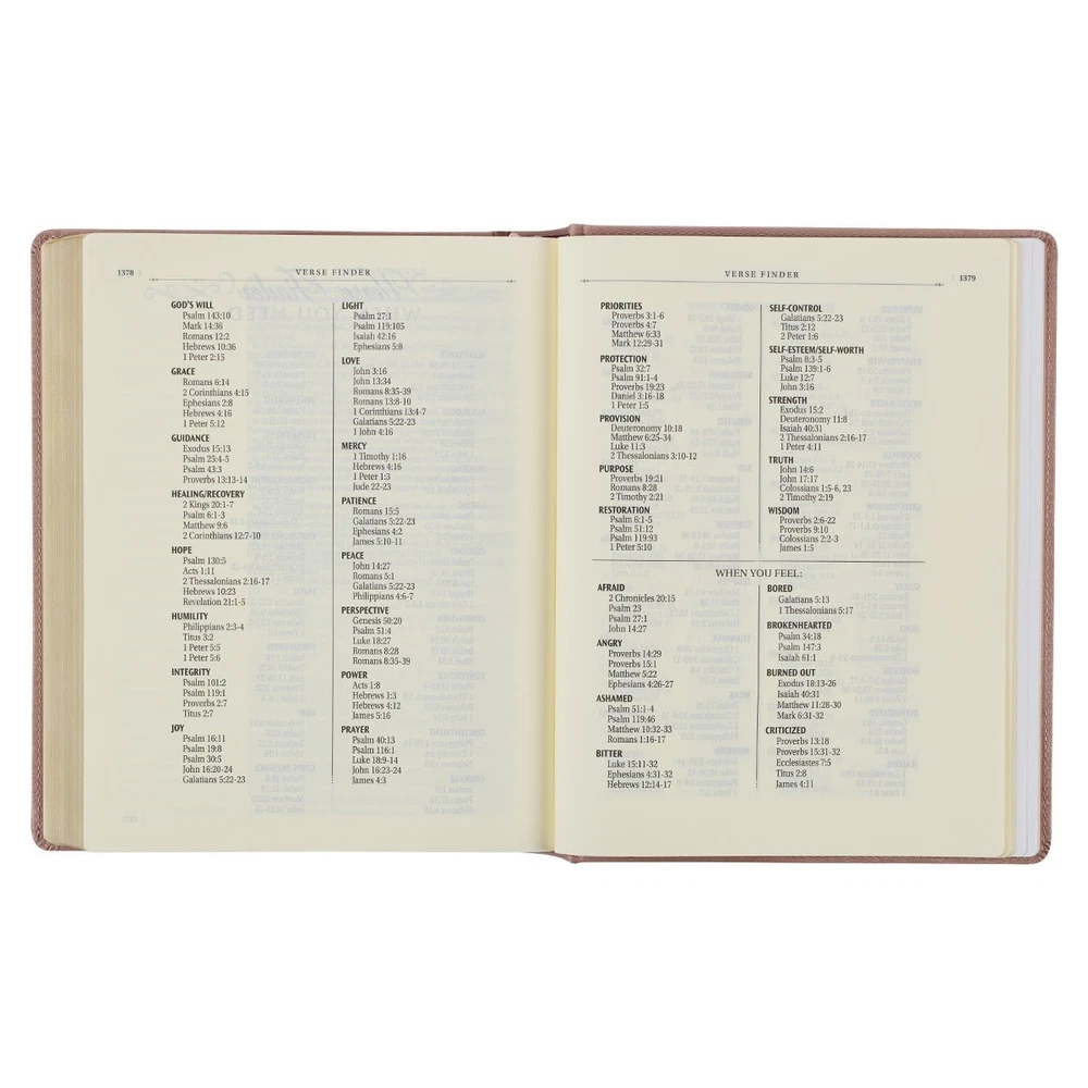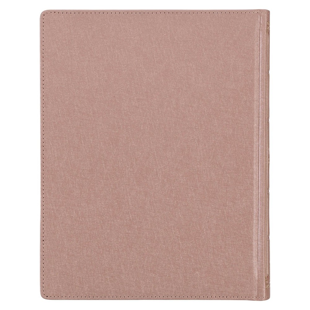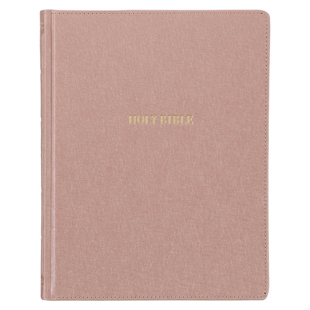 The Pearlescent Rose Gold Faux Leather Hardcover Large Print King James Version Note-taking Bible is a simple but lovely Bible that is easy to read and provides space to keep all your written reflections next to the passage. Visit Storefront Contact Us View Feedback About Our Company KJV Holy Bible, Large Print Note-taking Bible, Faux Leather Hardcover - King James Version, Rose Gold Item Details The Pearlescent Rose Gold Faux Leather Hardcover Large Print King James Version Note-taking Bible is a simple but lovely Bible that is easy to read and provides space to keep all your written reflections next to the passage. The Rose Gold Faux Leather Hardcover Large Print King James Version Note-taking Bible is a simple but lovely Bible that is easy to read and provides space to keep all your written reflections next to the passage. The note-taking Bible features a hardcover wrapped in beautiful pearlescent rose gold faux leather. The simple design is elevated to elegance by the addition of a gold-foiled title that sits in the middle of the front cover. HOLY BIBLE A heat-debossed gold-foiled notched frame is set on the spine, and it holds gold-foiled faux ribbing, and the gold-foiled title, and version reference. The pages are gilt-edged to add to the subtle sheen of the cover. With plenty of space to doodle, list, or write, the 2.5-inch wide margins featuring 1.8-inch wide lines will keep your insights close to the text you are studying. Additional study helps are also available in this Bible and include two satin ribbon markers, a thematic Scripture verse finder, a concordance, a one-year Bible reading plan, and 8 full-color maps. In the back, several pages are included for your own notes and in the front, the Epistle Dedicatory letter is included for historical reference. The text is presented in a large 10.8-point type to enhance readability. The Rose Gold Faux Leather Hardcover Large Print King James Version Note-taking Bible is a fantastic Bible to give to a mother or girlfriend who is serious about note-taking. Rose Gold cover Faux leather Hardcover Gold-foiled title King James Version Note-taking Bible Epistle dedicatory letter included 2.5-inch wide margins 1.8-inch wide lines 1450 gilt-edged pages One-color interior 2 ribbon markers Verse finder One-year reading plan Concordance 8 full-color maps 10.8-point type Packaged in full-color printed cardstock sleeve Size: 10.2" x 8.1" x 2" (259 x 206 x 51mm) Return Policy To ensure complete satisfaction of our customers, we offer a 30 day return policy for all orders. Please reach out to us if you have any questions and one of our friendly customer service representatives will reply within 24 hours. This excludes weekends and holidays. Shipping Information All orders are fulfilled and shipped within 1-2 business days excluding holidays and will be shipped via standard economy shipping. Please do not hesitate to reach out with any questions. Please Note: Our hours of operation are Monday-Friday, 8am-5pm (CST). All orders received before 2pm (CST) will be processed & shipped within 1-2 business days.* Average transit times are 2-7 business days to the contiguous 48 United States and the District of Columbia. (*Does not apply to holidays or special orders.) Shop Our Storefront | View Feedback | Contact Us | Add Us to Your Favorites
