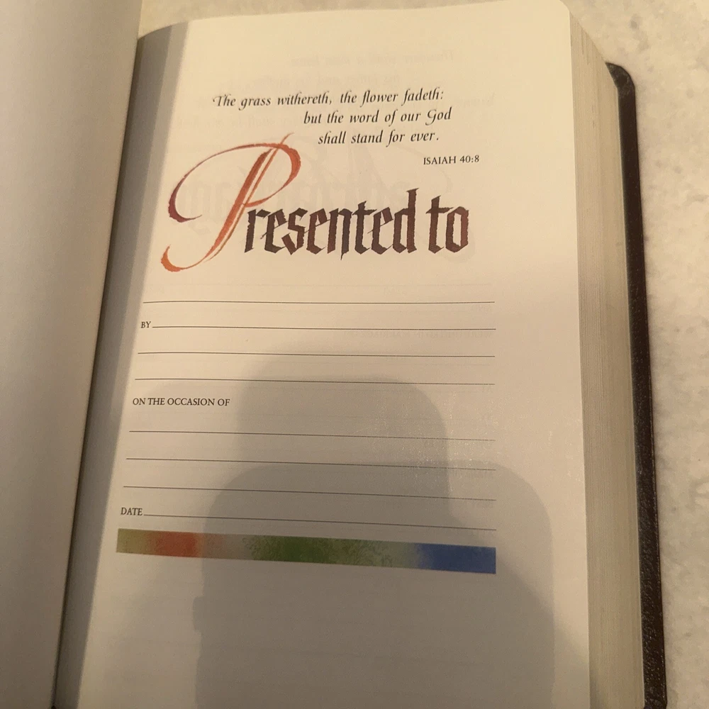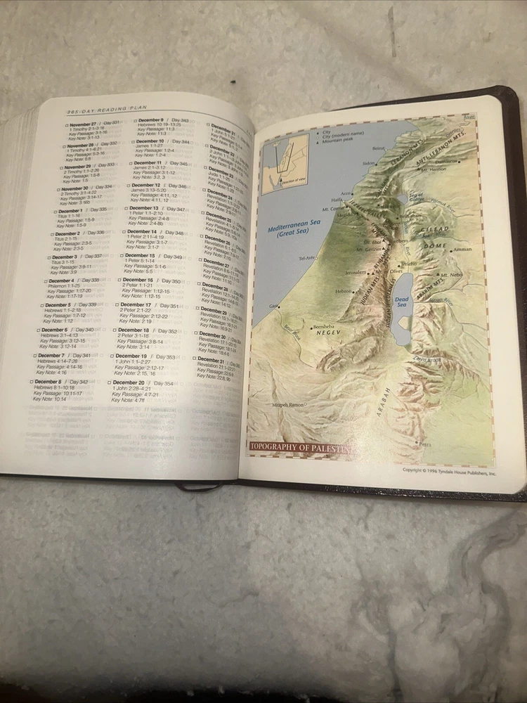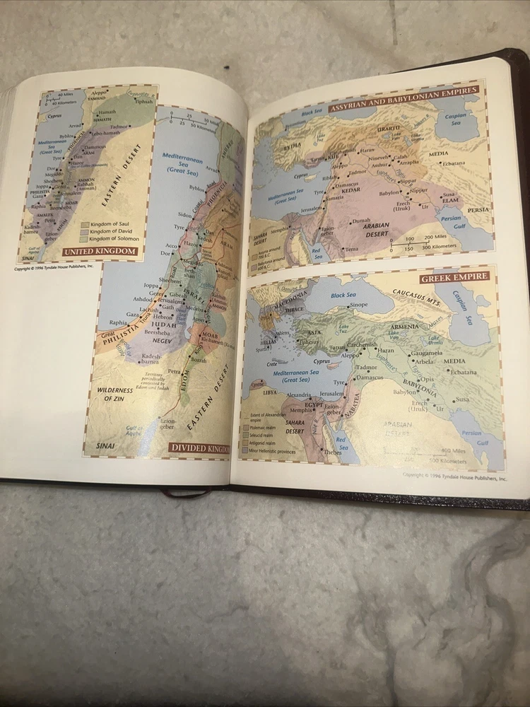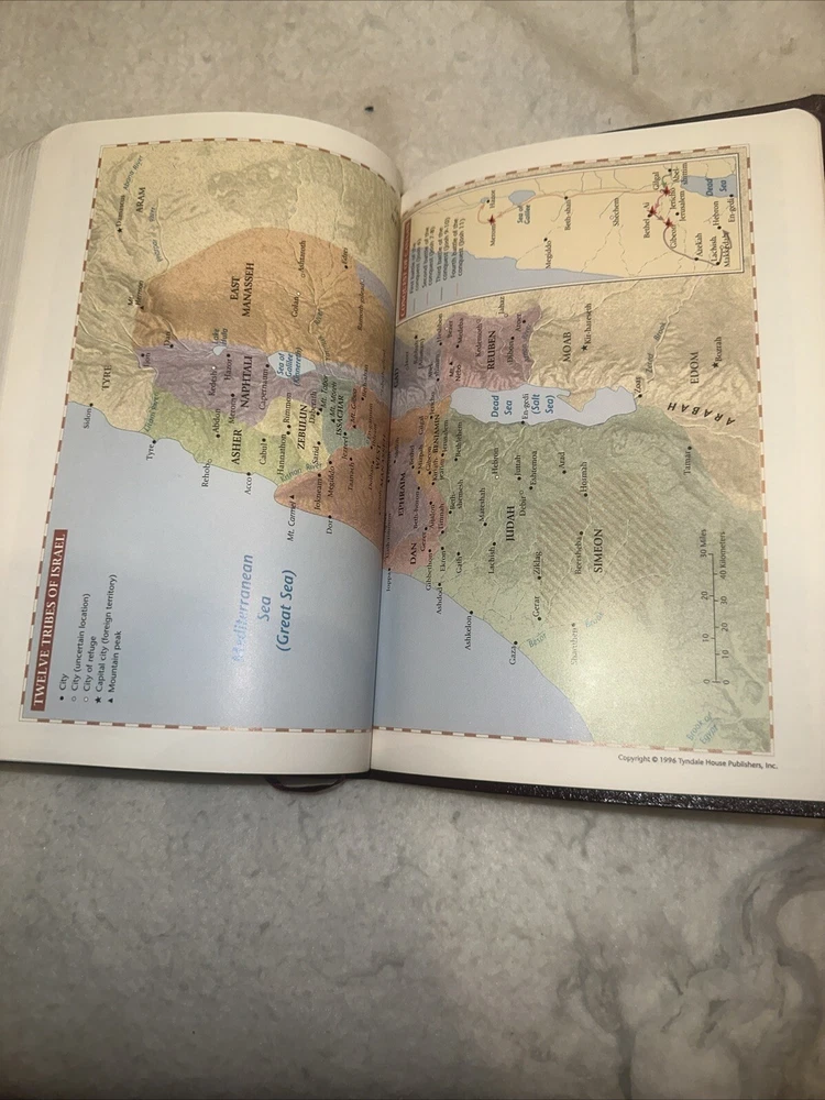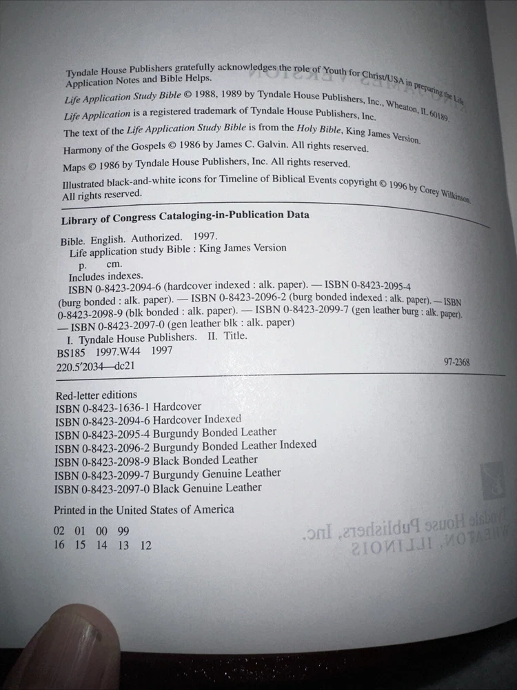 This Life Application Study Bible is a Tyndale House Publishers product with a faux leather format. It has a length of 9.5 inches, a height of 1.375 inches, and a width of 6.375 inches. The Bible was published in 1997 and has 2454 pages. The intended audience is young adults and adults, and it is written in English. The Bible features maps, a concordance, and study Bible with notes. It falls under the categories of Bibles and Religion, and the topic is Biblical Studies/General and King James Version/Study. The Bible is weighed 3lb 7oz and has a publication year of 1997. Get this incredible study Bible today and delve into the world of biblical studies. FREE SHIPPING 4 places that I know of where there is small writing (See pics) If it wasn’t for that writing I would have listed in Like New Condition but had to list as Bery Good Condition Includes Bible Cover has handle and zipper works like new