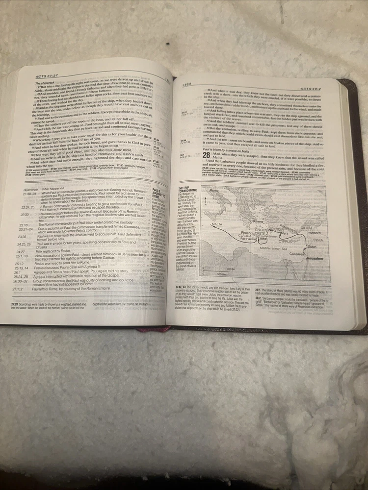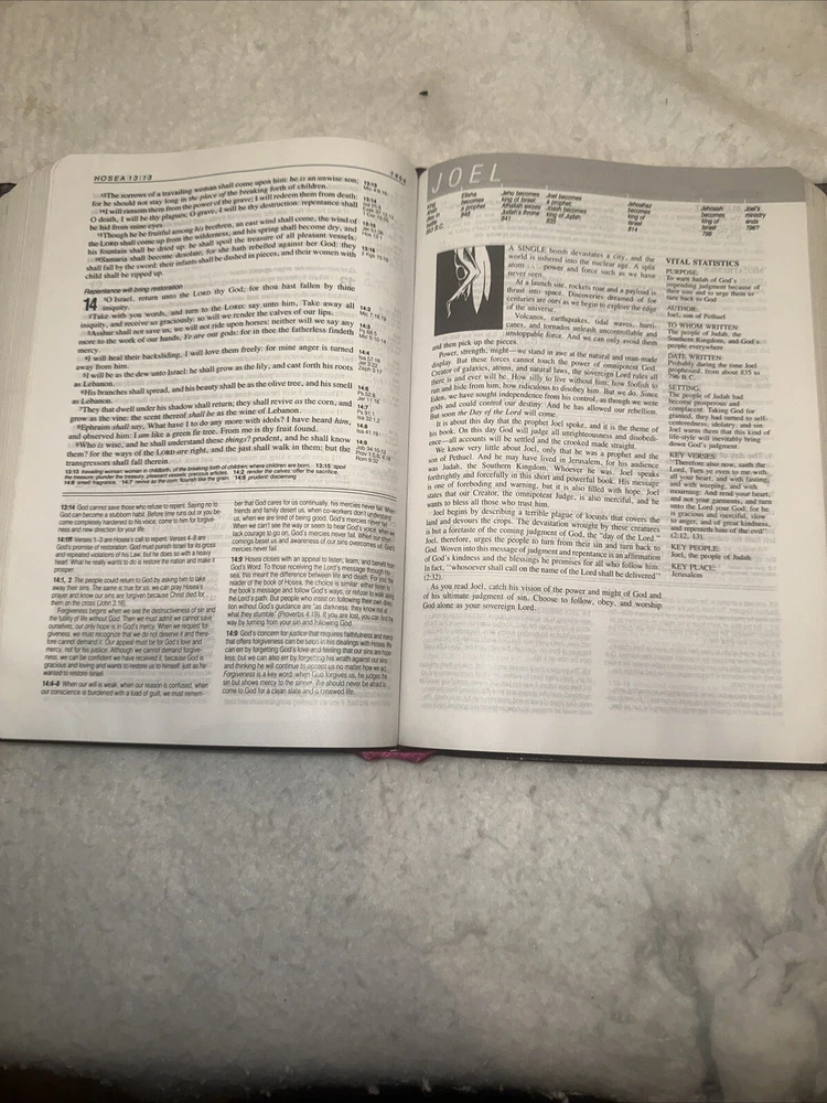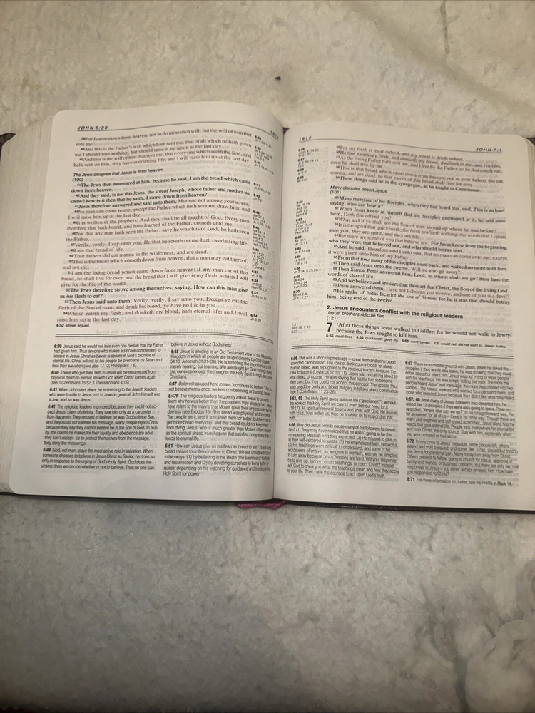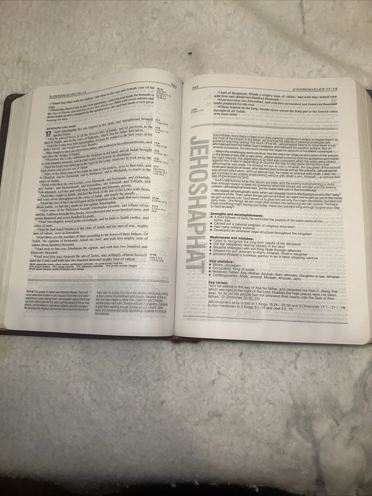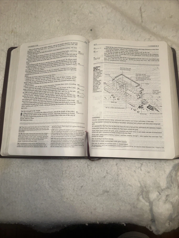 This Life Application Study Bible is a Tyndale House Publishers product with a faux leather format. It has a length of 9.5 inches, a height of 1.375 inches, and a width of 6.375 inches. The Bible was published in 1997 and has 2454 pages. The intended audience is young adults and adults, and it is written in English. The Bible features maps, a concordance, and study Bible with notes. It falls under the categories of Bibles and Religion, and the topic is Biblical Studies/General and King James Version/Study. The Bible is weighed 3lb 7oz and has a publication year of 1997. Get this incredible study Bible today and delve into the world of biblical studies. FREE SHIPPING 4 places that I know of where there is small writing (See pics) If it wasn’t for that writing I would have listed in Like New Condition but had to list as Bery Good Condition Includes Bible Cover has handle and zipper works like new