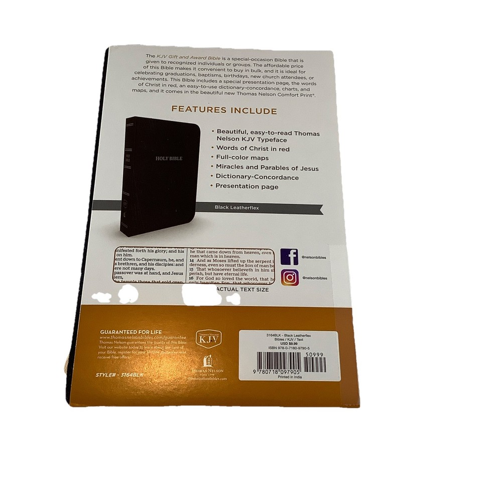 This beautiful KJV New Red Letter Gift and Award Bible Comfort Print Black Leatherflex is the perfect addition to any collection. With features like faux leather bound, presentation page, black leatherflex, words of Christ in red, dictionary-concordance, miracles and parables of Jesus, and full-color maps, this Bible is both functional and stylish. The book title, Kjv Gift and Award Bibles Red Letter Edition [Black], is written in English and published by Thomas Nelson. It is intended for a wide range of audiences, including young adults, ages 9-12, and adults. The book has 724 pages and is imitated with leather. The book is also a great gift for Bible lovers.