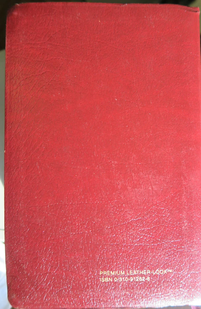 KJV Reference Bible 1994 Giant Print Maps Concordance Red Letter Leather Look. Initials on cover. The KJV Reference Bible 1994 Red Leather-Look Large Type/print. References. Concordance. Maps Like-New Condition. I am the first to open the bible for photos. Gold gilt page edges, chapter tabs, & word of Christ in red letters. Published by Zondervan.
