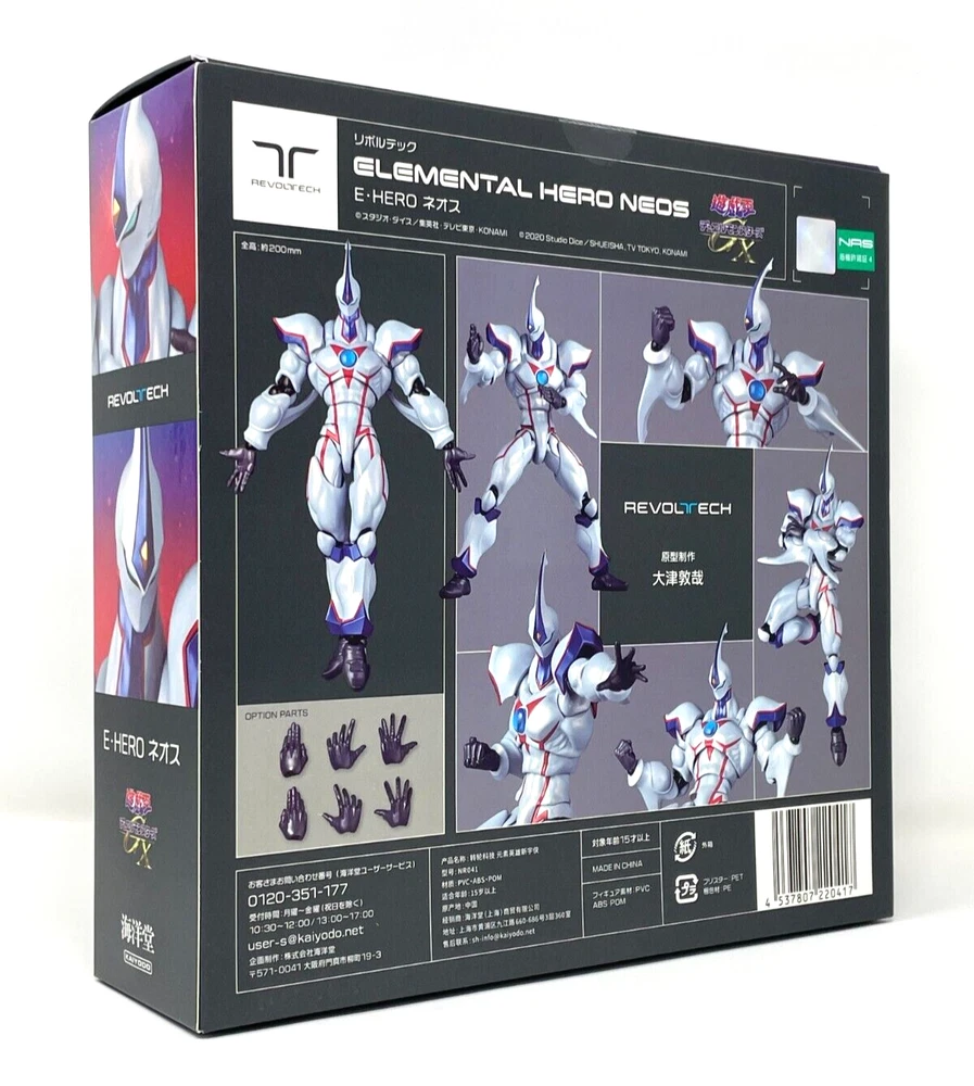 Description Revoltech's "Yu-Gi-Oh!" series summons the Elemental Hero Neos from the second TV anime series, "Yu-Gi-Oh! Duel Monsters GX"!! Judai Yuki visits Jupiter's moon Io during a mysterious experience. The card he obtains there is the ideal hero he once imagined as a child! With the power to contact fuse with various Neo-Spatian cards, Neos has fought alongside Judai in countless duels as his ace card. His well-defined, massive hero body has been recreated in an impressive size of about 20 cm in height. The white body shines with a pearl finish, and the heroic red and blue paintwork is vividly decided. The movement of the entire body makes extensive use of specially designed joints. The shoulders allow the strong arms to be firmly tucked inside, and the hip joints are designed to fit in with the thighs, so there are no gaps, allowing you to beautifully decide on bold action poses. Recreate the duel scenes with the "Revoltech Elemental Hero Neos," which will look just as big as the one in the movie when placed next to the currently available "Revoltech Yuki Judai"! ●In addition to the basic powerful "clenched fist," the interchangeable wrist parts also include two different "open hands" and a "katana hand" with the fingers aligned, and the design has been carefully crafted to even show the facial expressions of the fingertips, allowing you to create heroic poses. ■Accessories - 6 optional hands - 1 display stand * The number (type) of optional parts does not include those that are attached at the time of shipment (standard). Shipping Delivered carefully with packing materials. Delivery by FedEx or DHL with tracking number. International Buyers - Please Note: Import duties, taxes, and charges are not included in the item price or shipping cost. These charges are the buyer's responsibility. Please check with your country's customs office to determine what these additional costs will be prior to bidding or buying. Thank you for your understanding.