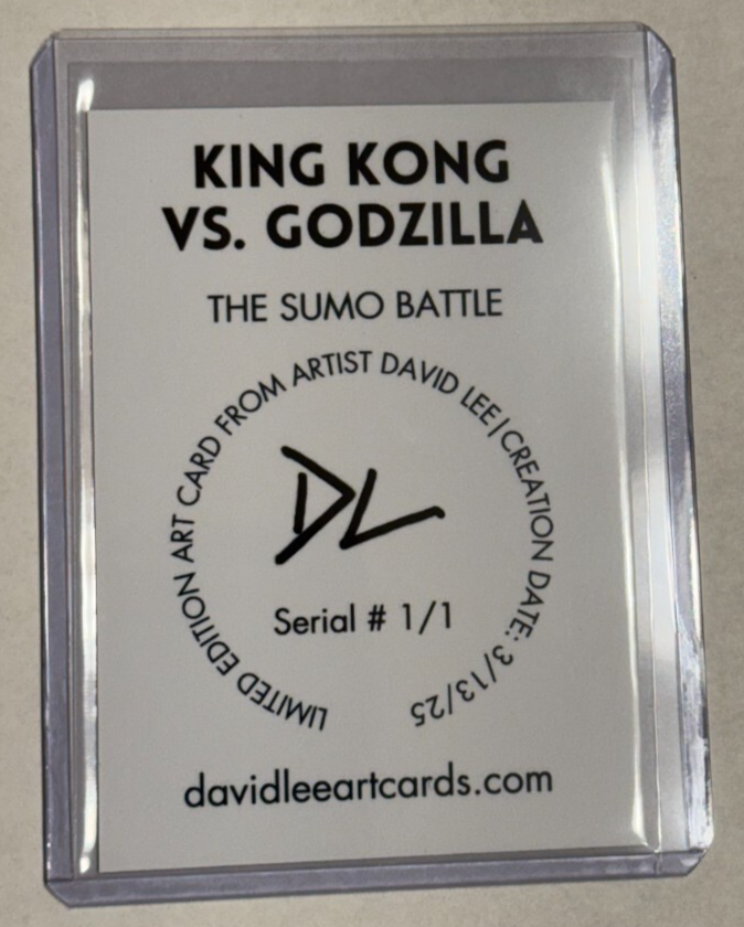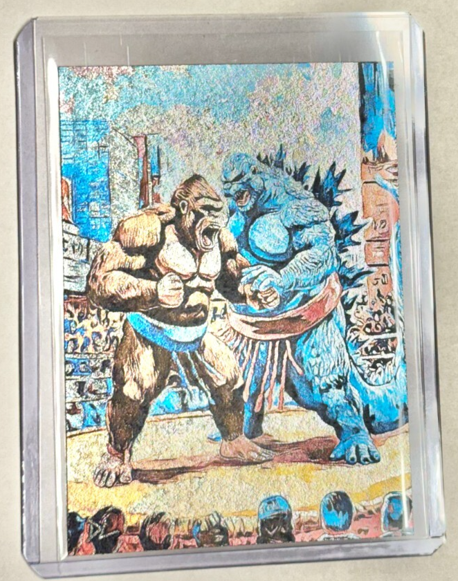 King Kong Vs. Godzilla takes on a whole new life with this exclusive platinum artist signed trading card, aptly named “God Vs. King.” A true one-of-a-kind piece from the renowned David Lee Art Cards, this card is not only limited edition but also serial numbered, ensuring its uniqueness and collectability. The card captures the epic showdown between the two iconic monsters in stunning detail, boasting the signatures of the artist David Lee responsible for bringing this vision to life. Fans of the franchise will appreciate the care taken to create this masterpiece, making it a must-have for any serious collector or enthusiast of the King Kong Vs. Godzilla legacy.