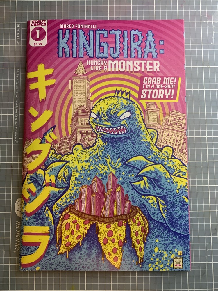 The product is a comic book titled "Kingjira: Hungry Like A Monster #1," published in 2022 by SCOUT Comics. It falls under the genre of Monster and Horror & Sci-Fi, featuring characters like Kaiju and Godzilla. The comic is a single issue in the series and is part of the Modern Age era of US Comics, catering to fans of monster-centric storytelling within the comic book realm.