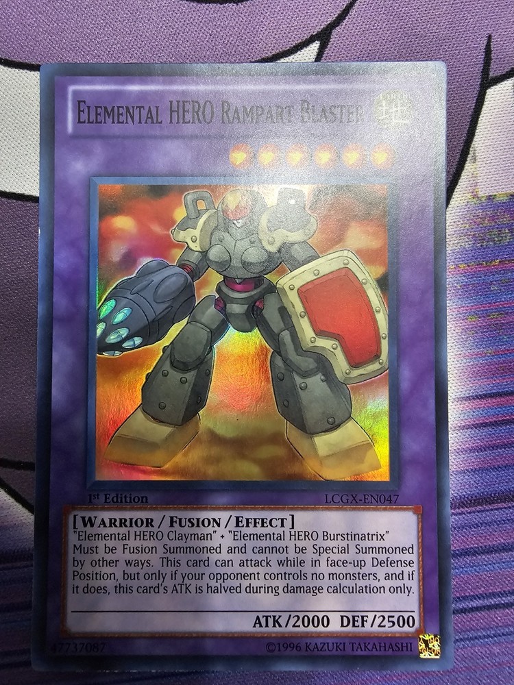 Unleash the power of Earth with the Elemental Hero Rampart Blaster, a Super Rare Unlimited Edition fusion card from the Yu-Gi-Oh! TCG's Legendary Collection 2: The Duel Academy Years. This card, featuring a striking Holo finish, is a must-have for collectors and players alike, showcasing the iconic Warrior creature/monster type in all its glory. Crafted by Konami, the Rampart Blaster is a testament to the rich lore and strategic depth of the Yu-Gi-Oh! universe. With its unlimited feature, it's as accessible as it is powerful, providing a balanced addition to any deck. Enhance your game and expand your collection with this earth-shaking card.