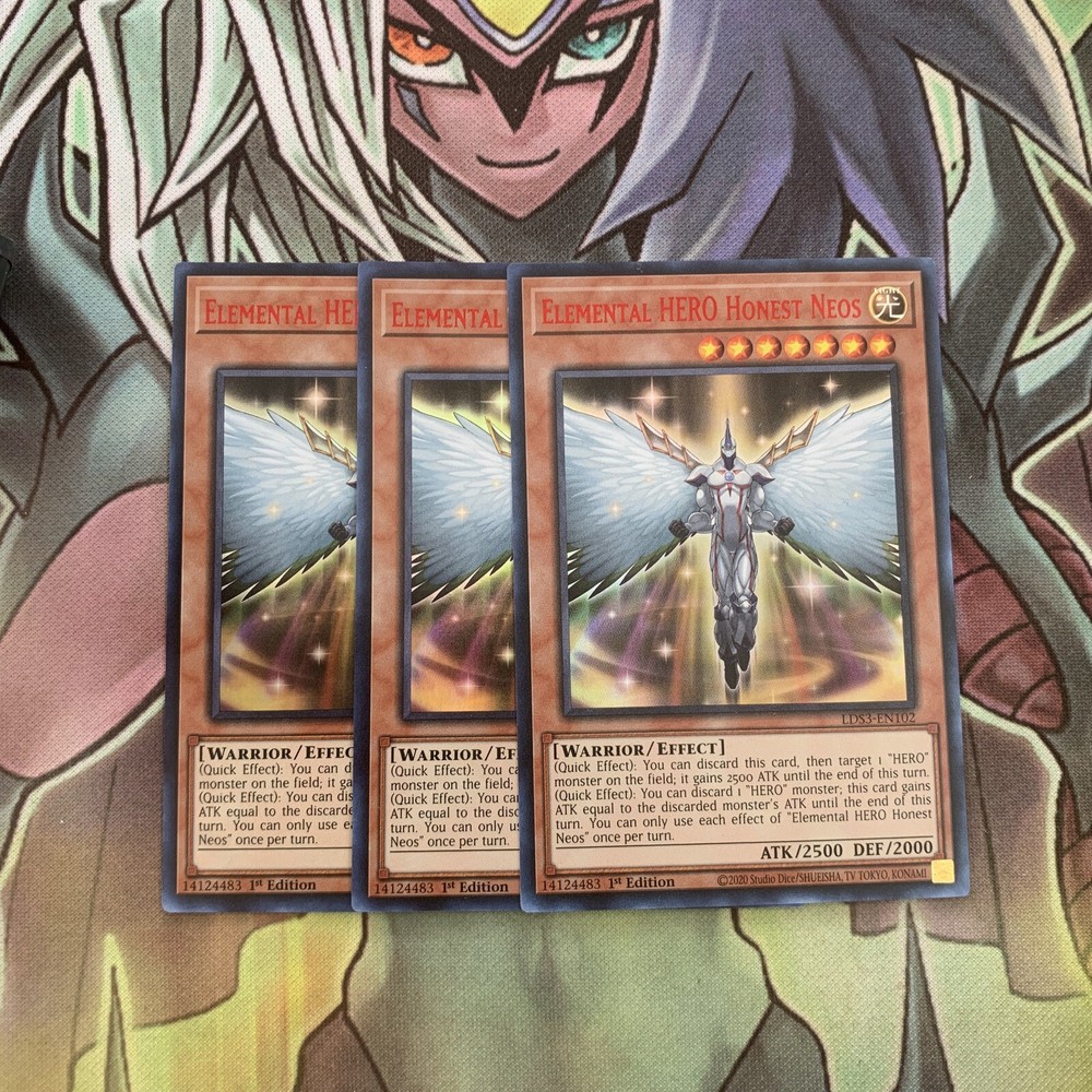This playset is mixed edition (you will receive a mixture of unlimited and 1st edition cards) Listing Template 2018 Home About Us Shipping Returns View Feedback Contact Us LDS3-EN102 x3 Elemental HERO Honest Neos Varying Colours Ultra Excellent Yugioh These are cards in excellent condition as per the photos. You will receive a playset of cards. (x3) Thanks for viewing! Thanks for viewing! Please check out our eBay store for more cards and don’t forget to use our promotional offers to save money on multiple items! We offer COMBINED INTERNATIONAL SHIPPING! Please contact us and ask us to combine multiple cards in your shipment to save on postage costs! International tracking is included on all orders over £40. If you require a tracking code under this amount it is an additional charge of £6.50. Please add this to your order or contact us for more information. We provide postage free in the UK! All of our single cards are sleeved, with a taped Toploader to ensure maximum protection, and the best overall condition of your cards! Combined orders may in the same sleeve, unless requested otherwise. Do you want to earn extra cash for your old cards? Clear out your binder and send us photos of what you have! We will happily send you an offer and sort out postage to make it hassle free. There's no harm in trying! Message us now! Free UK Delivery! Honest Sellers. We take care of the cards so you can worry less about the fuss and more about winning, competing and collecting. About Us We started selling collectable cards over 6 years ago after selling off our own childhood Yu-Gi-Oh collection. We then rediscovered our passion for trading card games. Ever since, my brother and I have been trying to ensure that we provide a range of cards within the fastest possible time to ensure you can build your collection as you’d like it! With over 35,000 positive feedback we strive for quality customer service, aiming to give the service that we would like to receive and stock a huge inventory of new and vintage collectable cards from popular games such as Yu-Gi-Oh and Pokemon so there’s something for everyone! Our goal is that we hope to build a collectable card community as passionate about collectable cards as we are! Contact Us The best way to get in contact is through eBay’s ‘contact seller’ button where we’ll try to get back to you as soon as possible. Feedback We always prioritise your buying experience so you can shop without worry. Contact us if there’s any part of an order you were dissatisfied with as we hope to resolve any issues as soon as possible. Buy with confidence. View Our Categories