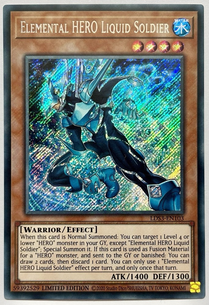 LDS3-EN103 Elemental HERO Liquid Soldier - Secret Rare Limited Edition Near Mint YuGiOh Card All conditions have been evaluated using Ebay's card condition guidelines for collectible card games, which can be found at a glance in the images and also viewed here in more detail: eBay card condition guidelines | eBay.co.uk I am currently selling all cards within my collection, with many still to be listed. Please check out my eBay profile for other offerings. Thanks for viewing!